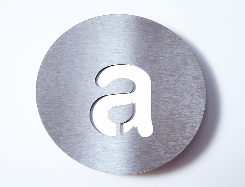Wykonane na bazie dwóch powierzchni, z których pierwsza wykonana ze stali nierdzewnej posiada wycięty znak, druga natomiast malowana proszkowo, kontrastuje w tle.