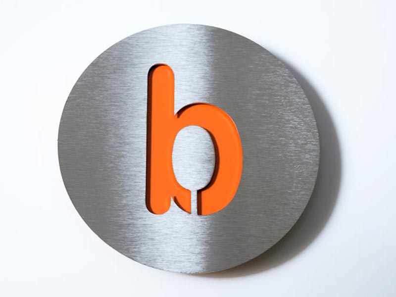 Wykonane na bazie dwóch powierzchni, z których pierwsza wykonana ze stali nierdzewnej posiada wycięty znak, druga natomiast malowana proszkowo, kontrastuje w tle.