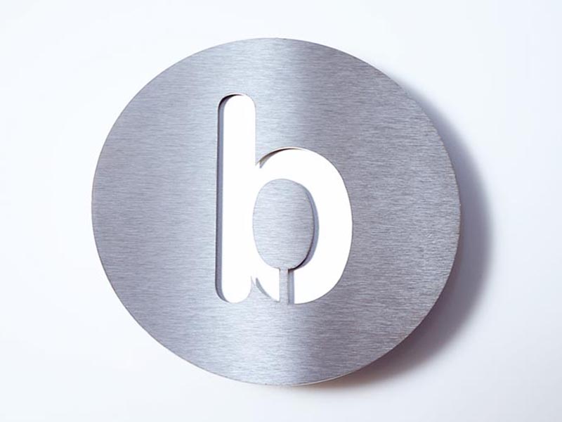 Wykonane na bazie dwóch powierzchni, z których pierwsza wykonana ze stali nierdzewnej posiada wycięty znak, druga natomiast malowana proszkowo, kontrastuje w tle.