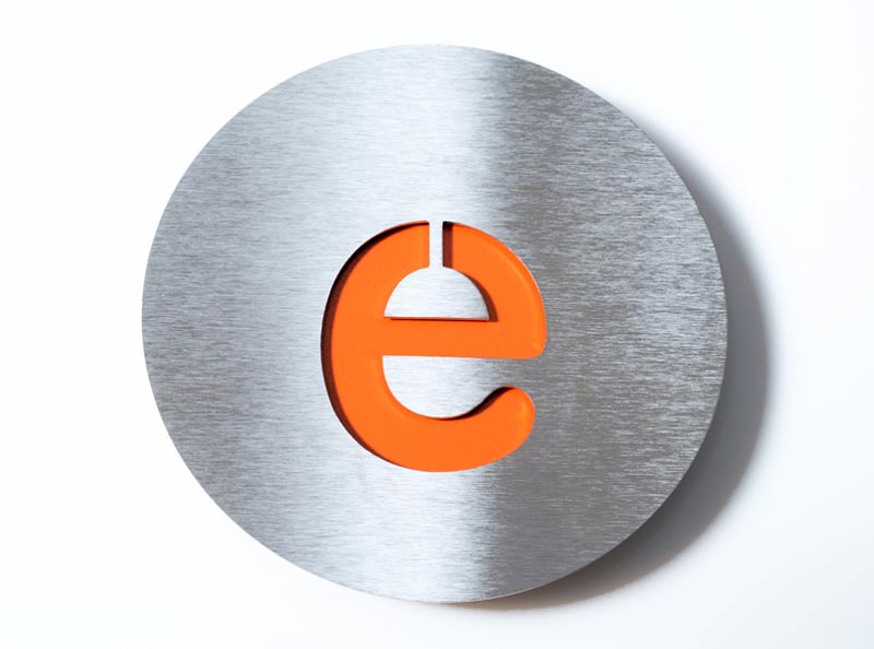 Wykonane na bazie dwóch powierzchni, z których pierwsza wykonana ze stali nierdzewnej posiada wycięty znak, druga natomiast malowana proszkowo, kontrastuje w tle.