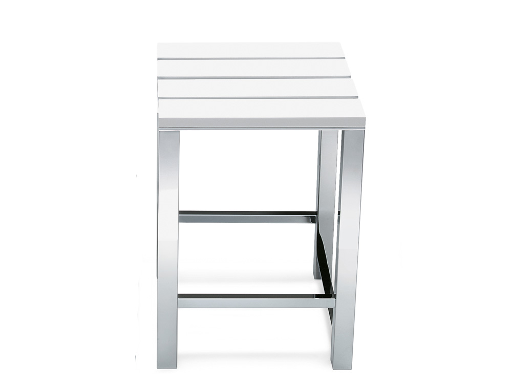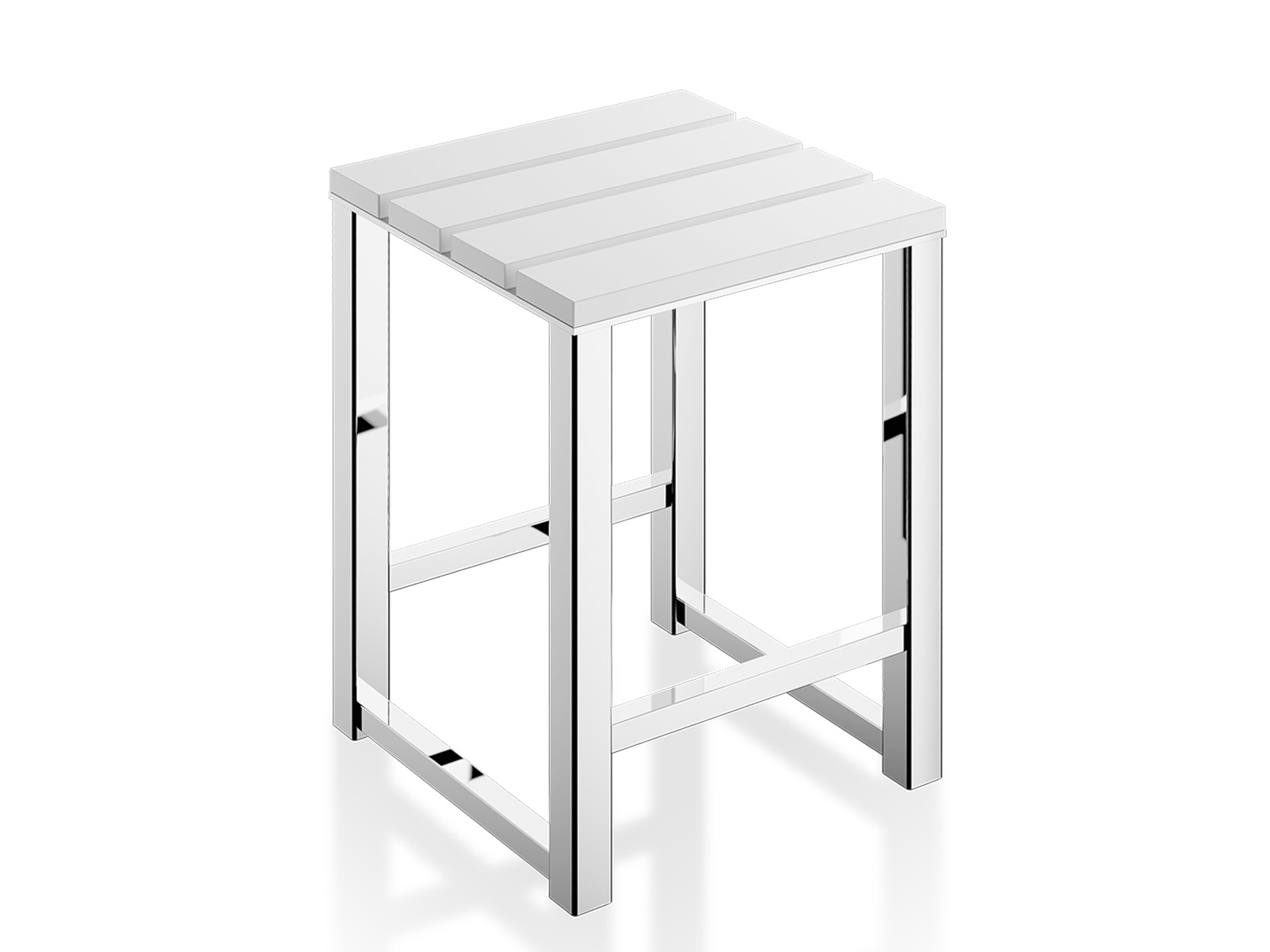 Elegancki łazienkowy prostokątny taboret ze stabilnym stelażem wykonanym z wysokiej jakości polerowanej stali nierdzewnej.