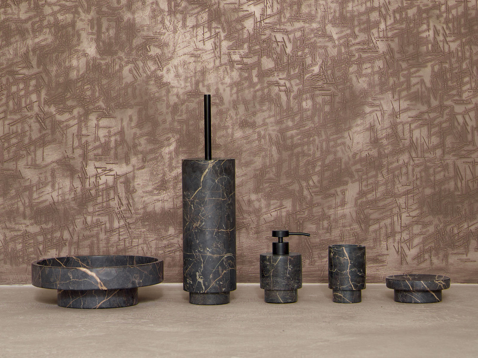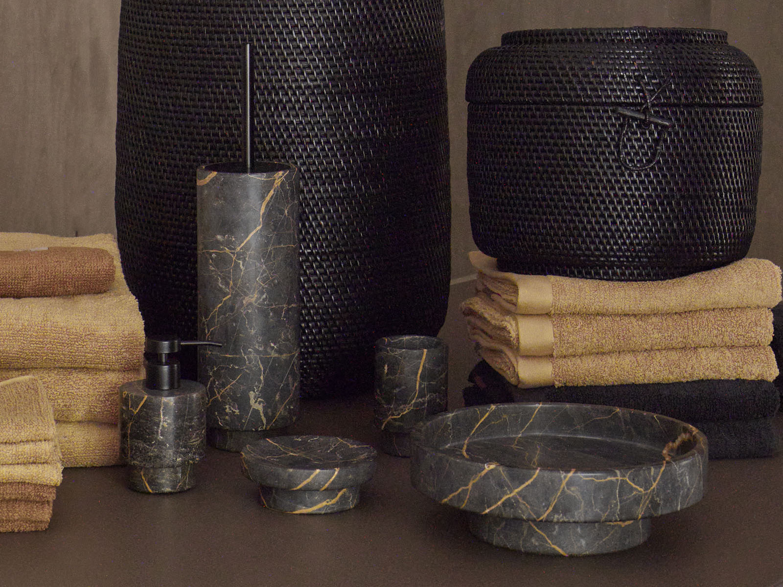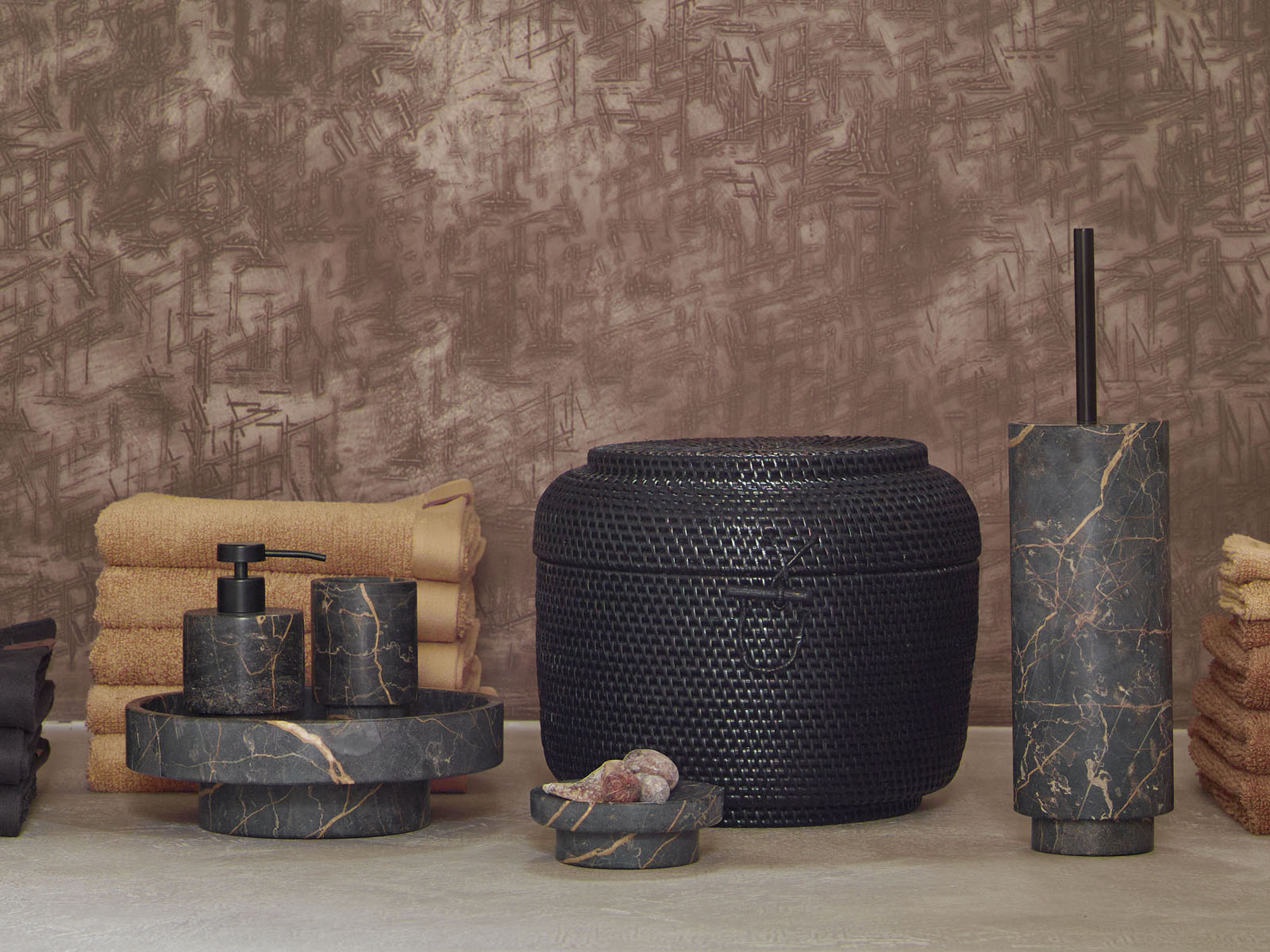 Kolekcja Porto Black/Gold charakteryzuje się bardzo prostym, a jednocześnie oryginalnym designem. Wykonana jest z naturalnego kamienia w ciemnym kolorze ze złotymi żyłkami. Kamień jest wzbogacony elementami ze stali nierdzewnej w kolorze czarnym. Połączenie ciemnego kamienia z czernią daje bardzo elegancki, oryginalny i dotąd rzadko osiągany efekt.