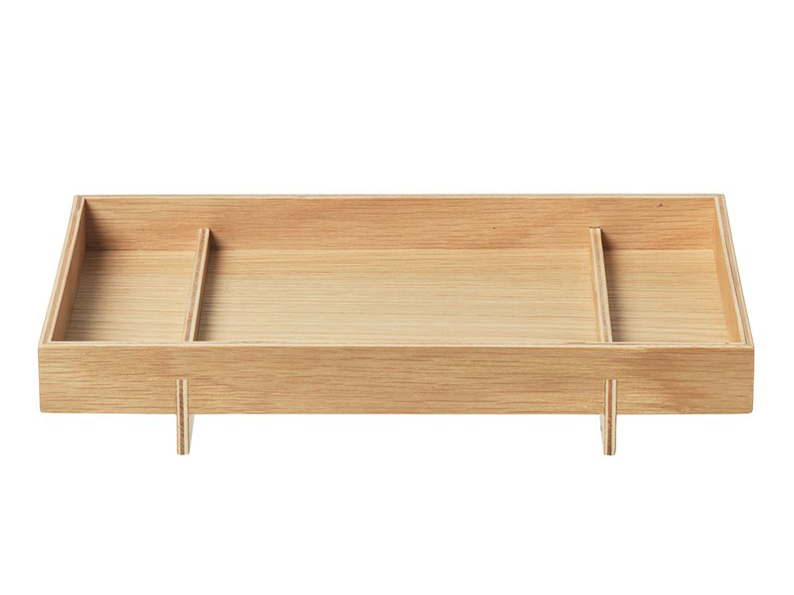 Projekt tac Abento wyróżnia się unikatowym rozwiązaniem - dwoma nogami, które ułatwiają chwytanie i przenoszenie. Nogi te przecinają korpus tacy, dzieląc jej powierzchnię na trzy praktyczne sekcje, co ułatwia organizację i podział przestrzeni na różne przedmioty. Ta inteligentna konstrukcja zapewnia wygodę użytkowania na co dzień, a także sprawia, że taca jest wyjątkowo łatwa w obsłudze.