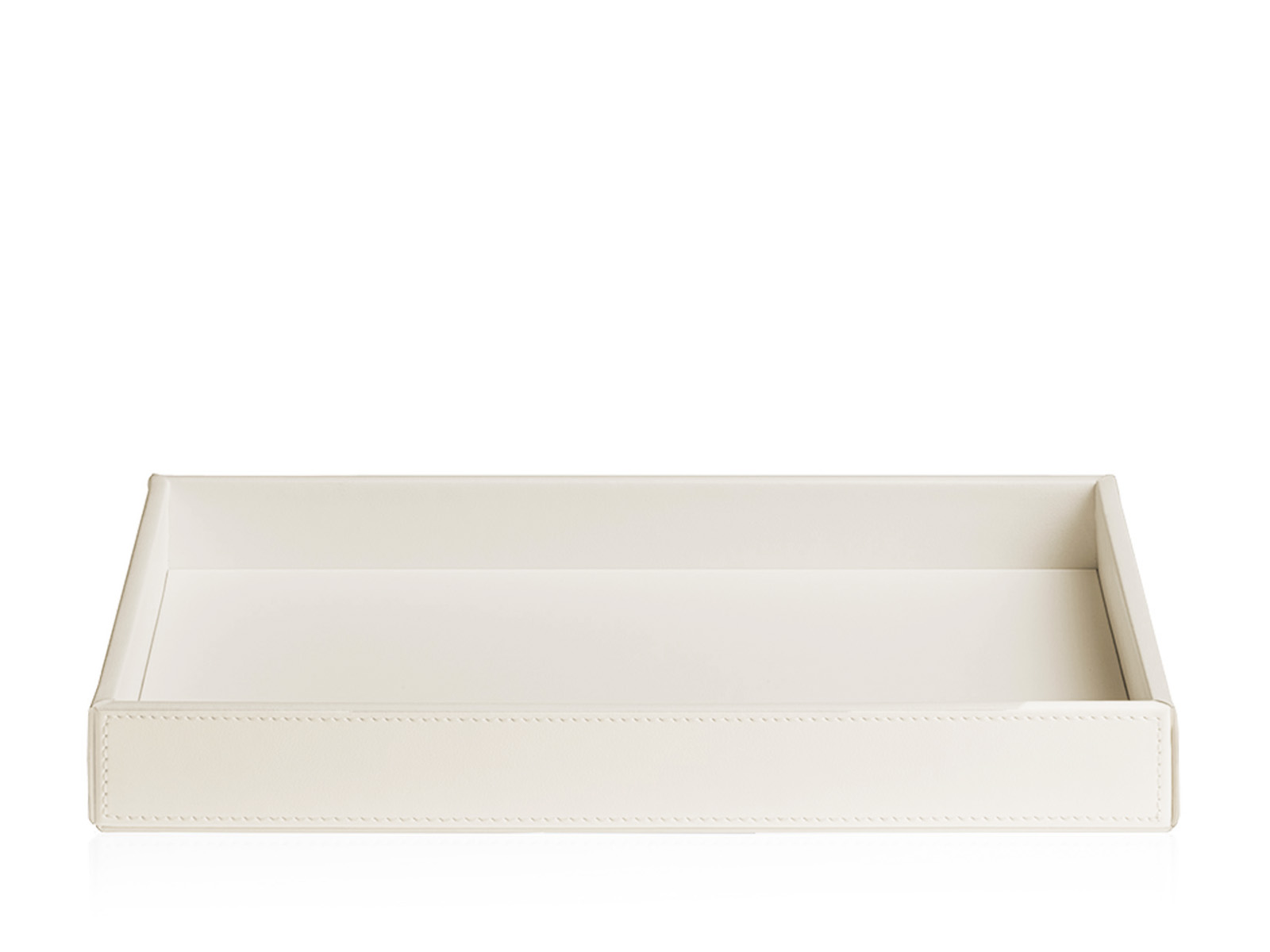 Brzegi ścianek tacki ozdobione efektownym przeszyciem w kolorze skóry.