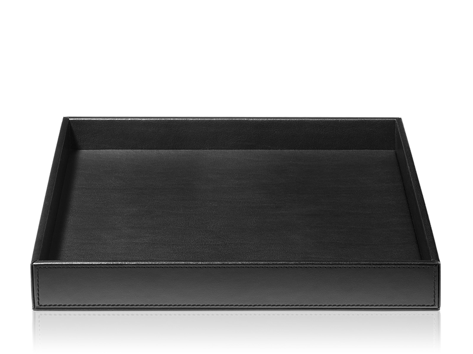 Brzegi ścianek tacki ozdobione efektownym przeszyciem w kolorze skóry.