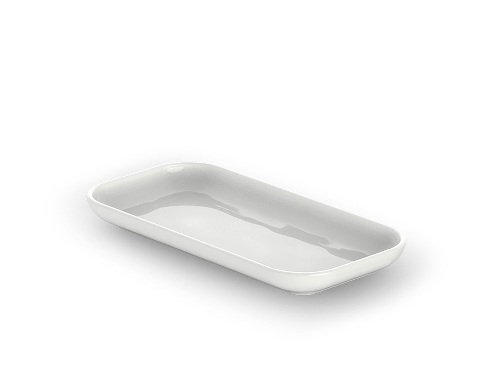 Tacka wykonana z białej gładkiej porcelany, może być wykorzystana jako nablatowa podstawka na akcesoria i przybory kosmetyczne oraz toaletowe.