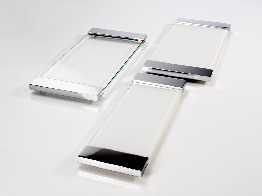Boki tacki wykonane z wysokiej jakości chromowanego mosiądzu, posiadają niewielkie nóżki.