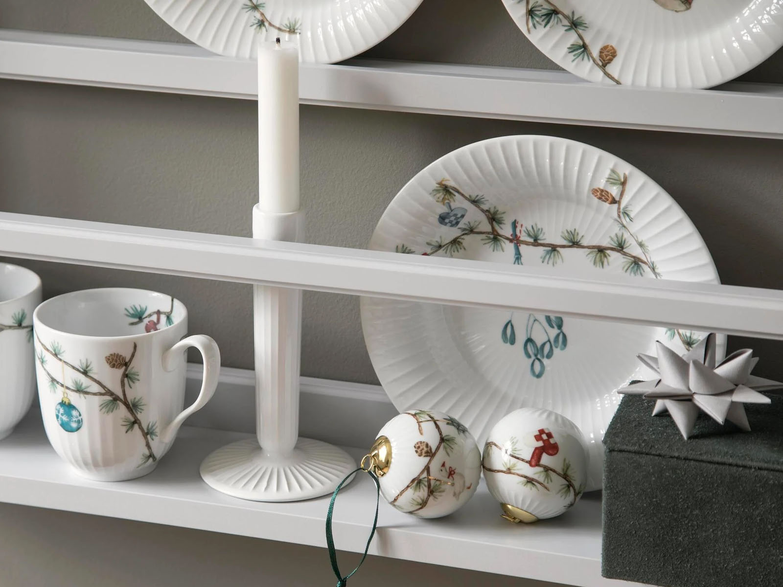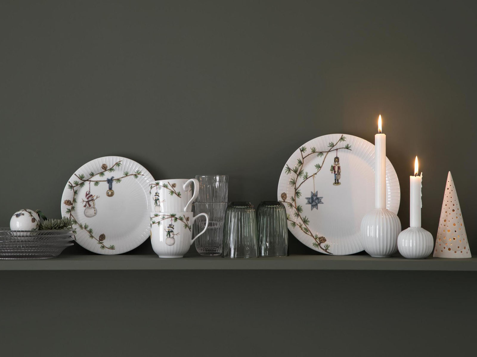 Zastawa stołowa Hammershøi X-mas idealnie wpisuje się w klimat i stylistykę kolekcji. Poszczególne elementy zastawy zdobione sa charakterystycznymi dla kolekcji żłobieniami oraz pięknymi, subtelnymi akcentami bożonarodzeniowymi.