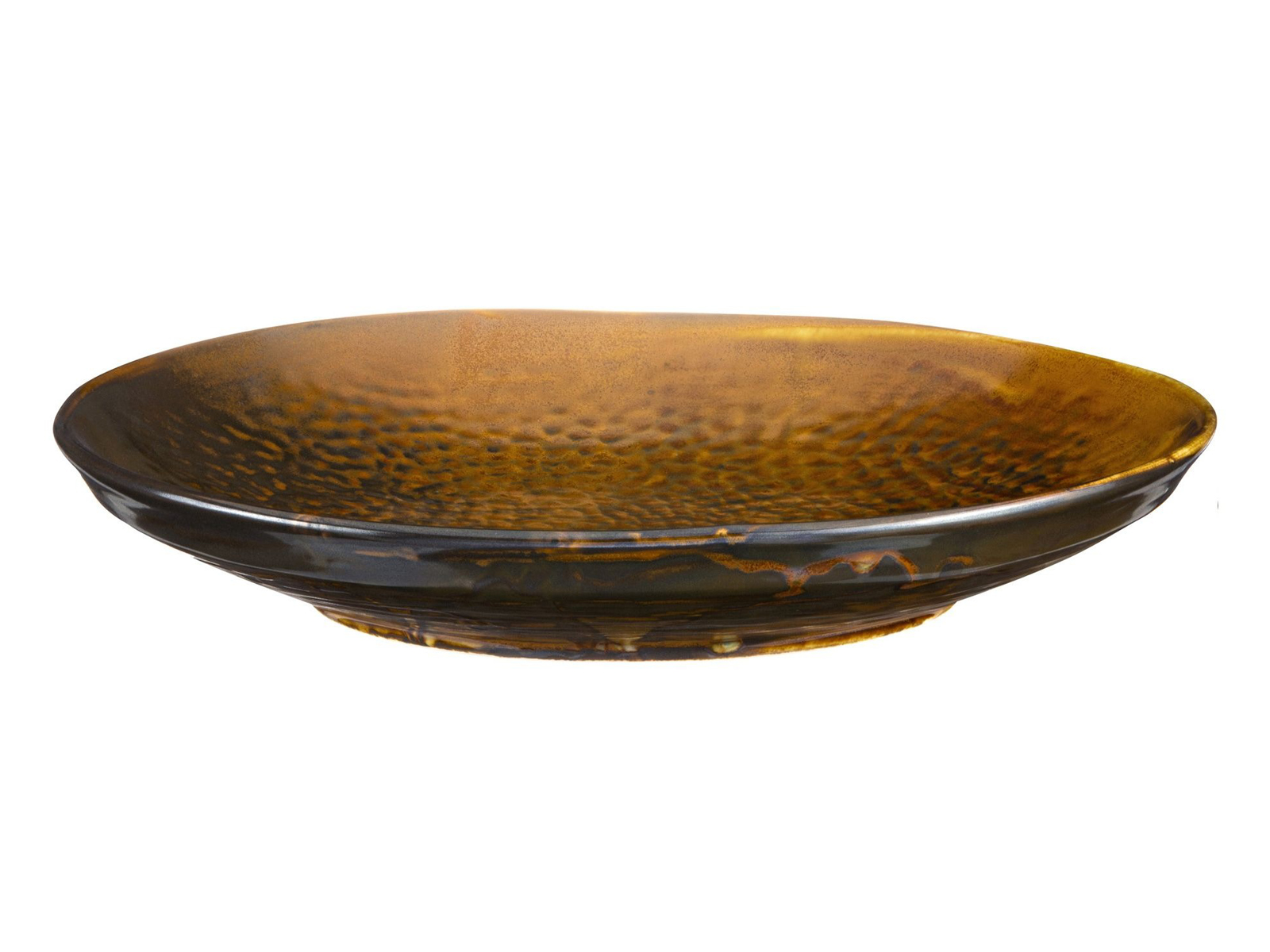 Verlo Fire to niezwykle inspirująca kolekcja, w której zaklęto siłę magmy i żar palonej ziemi. Cała zastawa emanuje nie tylko ciepłem, ale i różnorodnością form, faktur, wzorów i odcieni, uzyskanych dzięki reaktywnemu szkliwu i ręcznemu zdobnictwu. Naczynia pulsują pod matową powierzchnią barwami stygnącej lawy – pomarańczami, żółciami i głębokimi brązami, które podsycają żywiołowy charakter. Młotkowana struktura z wgłębieniami i wypukłościami nadaje talerzom wygląd spękanej wulkanicznej skorupy, a marszczenia – wrażenie mineralnej głębi i metalicznego blasku. Nieregularne paski, plamki, smugi przypominają języki płomieni i krople topionych skał, a falujące ranty brytfann i ramekinów wyglądają jak formowane w samym sercu wulkanu.