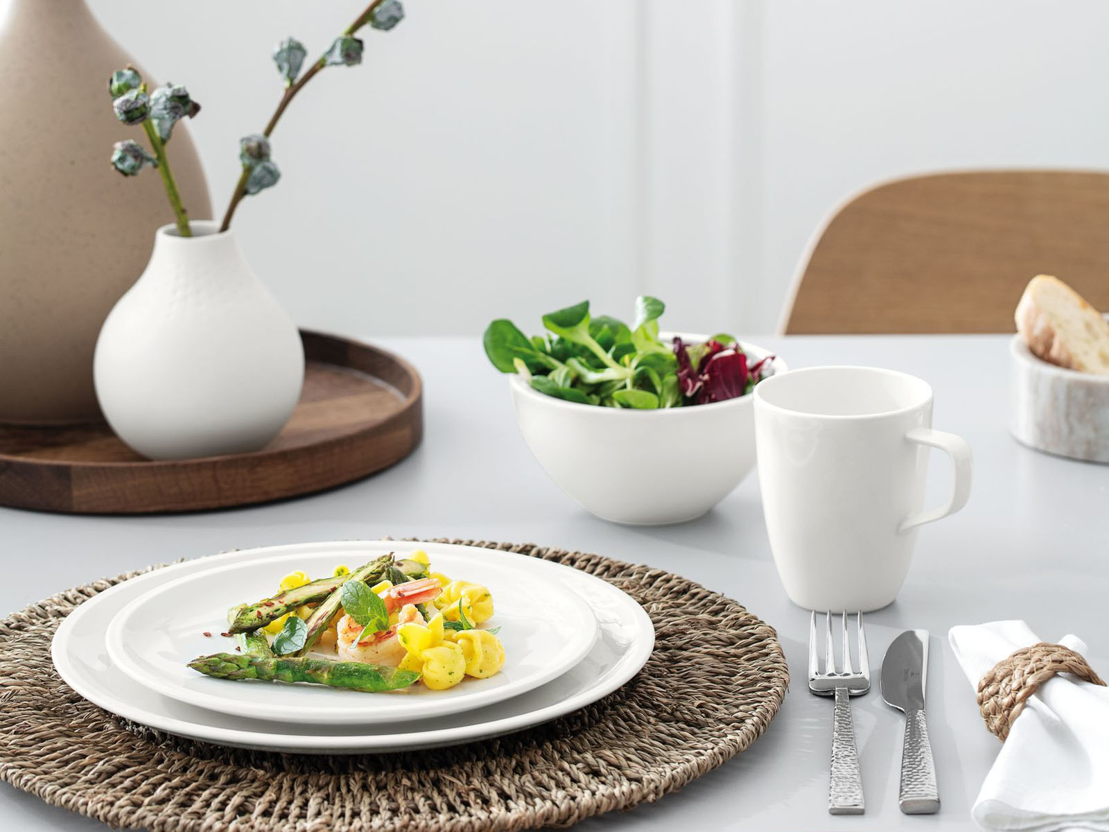 Villeroy&Boch Artesano to wyjątkowa kolekcja zastawy stołowej, która po mistrzowsku łączy wiele jakże różnych światów - z jednej strony szlachetność i nieskazitelność białej porcelany Premium, z drugiej z kolei strony natura w wydaniu drewna akacjowego, naturalnego korka oraz łupka. To wszystko połączone w wyraźnie rustykalnym stylu, ale jednak w nowoczesnej ponadczasowej interpretacji.