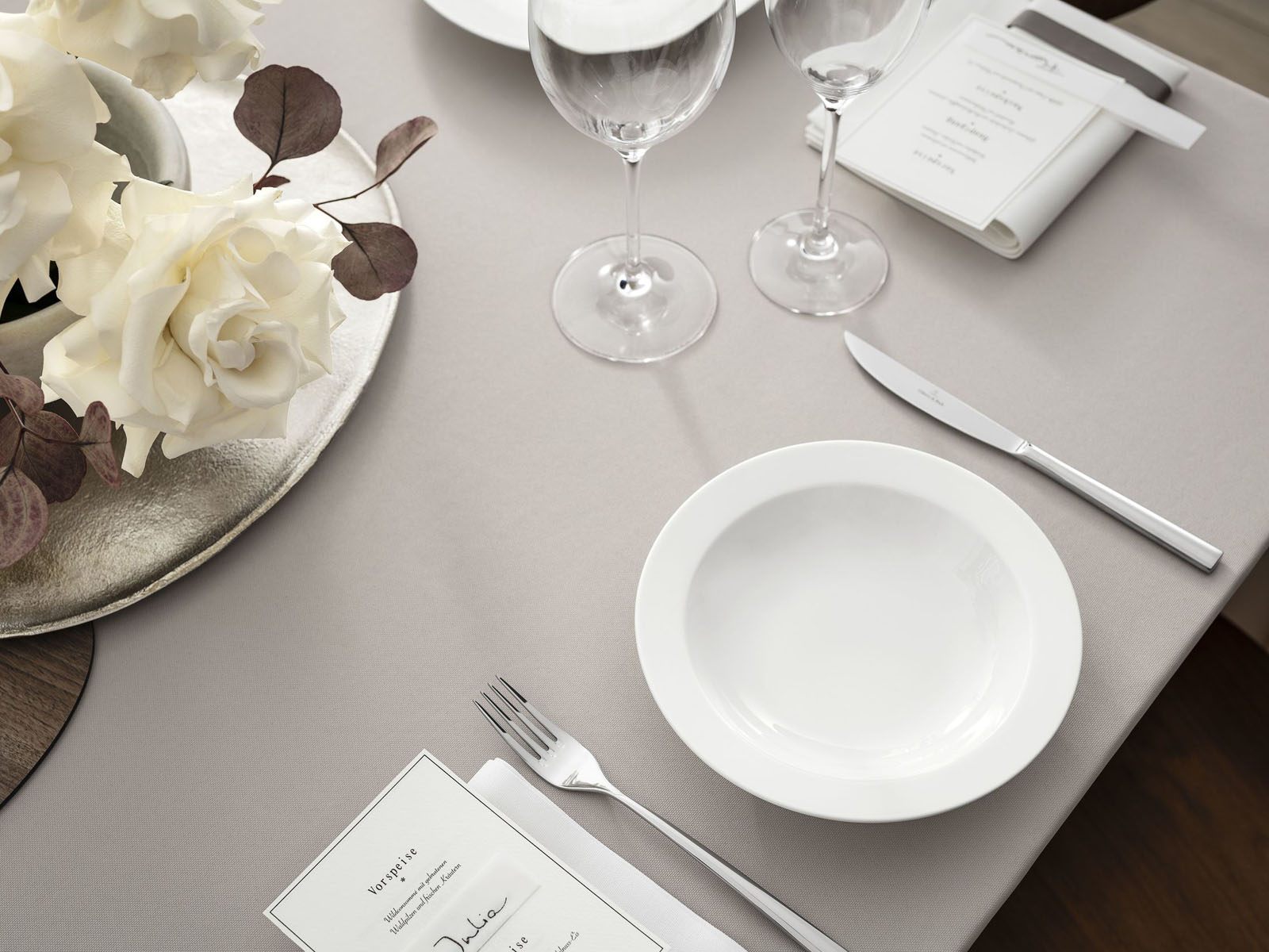 Piękna klasyczna forma, miękkie linie i najwyższej jakości błyszcząca porcelana Bone Porcelain dają razem niesamowity efekt w postaci ponadczasowej zastawy stołowej, która zawsze budzi żywe emocje i nie traci swojego blasku.