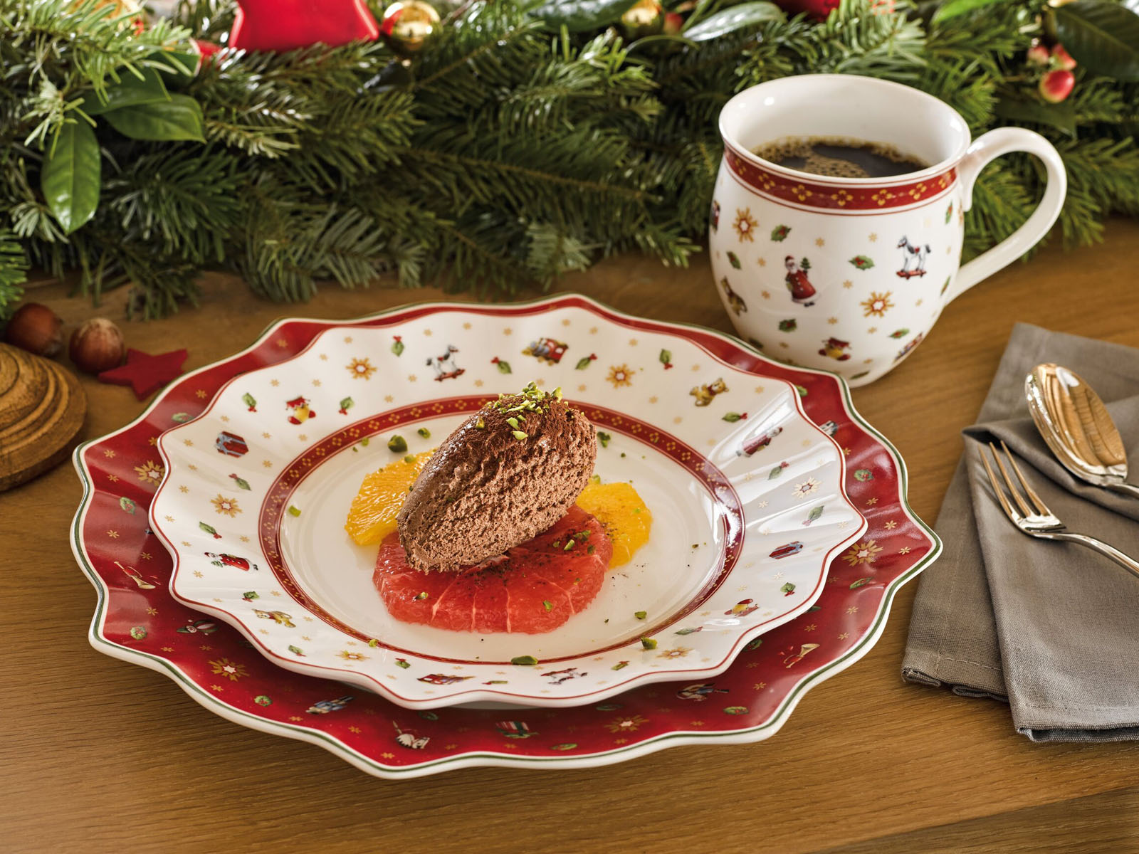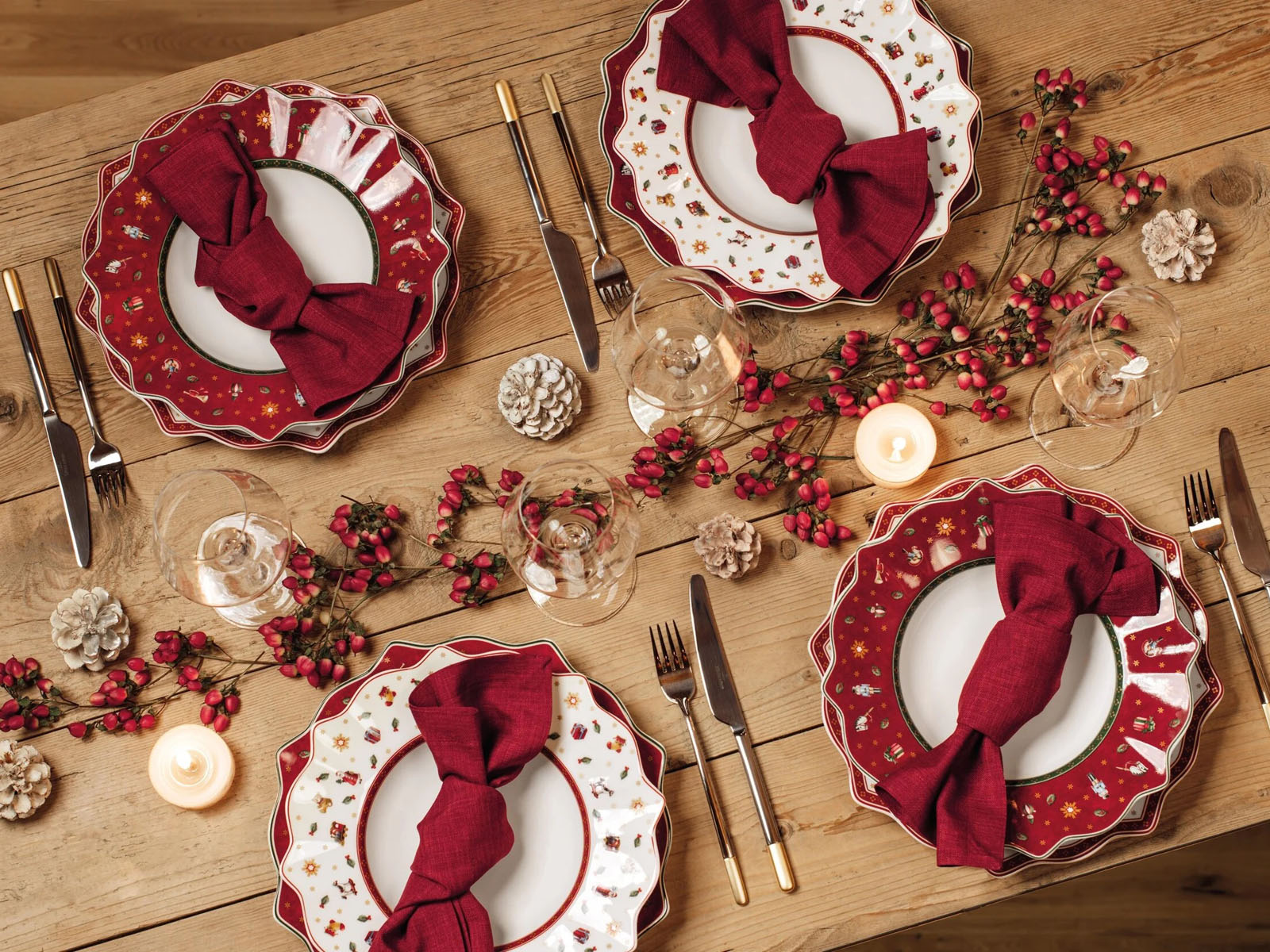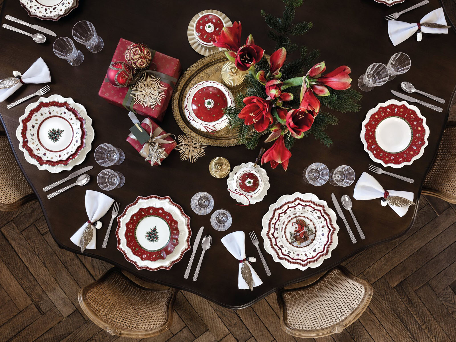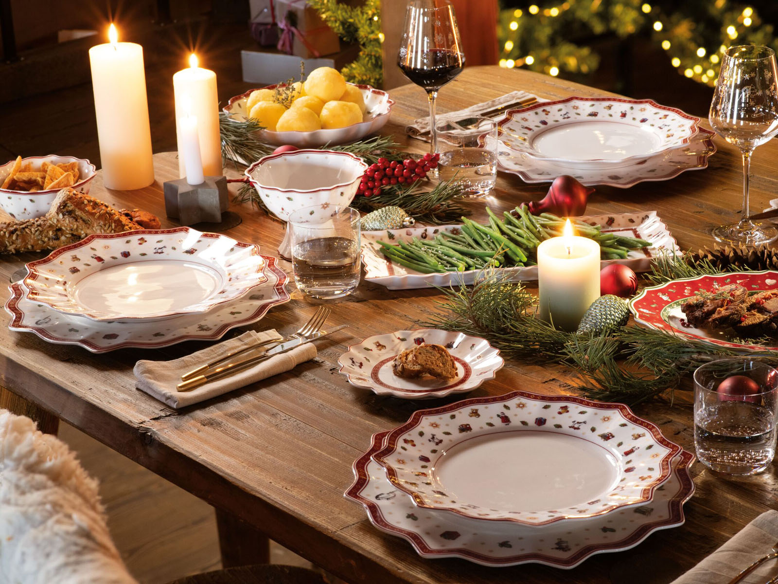 Villeroy&Boch Toy's Delight to wyjątkowo świąteczna bożonarodzeniowa kolekcja niezwykle eleganckiej zastawy stołowej wykonanej z najwyższej jakości porcelany. Stylistyczną inspiracją kolekcji jest magiczny świat świątecznych wspomnień. Zdobią ją ręcznie malowane motywy inspirowane klasycznymi zabawkami i scenami bożonarodzeniowymi, takimi jak uśmiechnięte misie, konie na biegunach czy drewniane pociągi. Utrzymana w tradycyjnej palecie barw – czerwieni, zieleni i bieli – z subtelnymi złotymi akcentami, tworzy ciepłą, elegancką atmosferę. Dzięki różnorodnym elementom, od talerzy po ozdoby stołowe, umożliwia stworzenie harmonijnej świątecznej aranżacji.