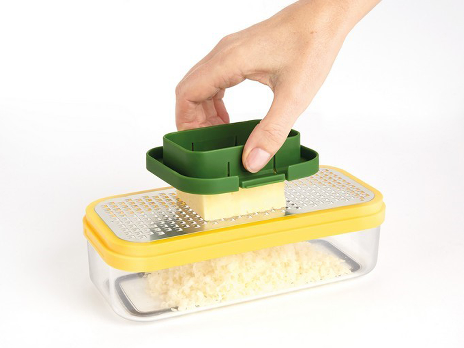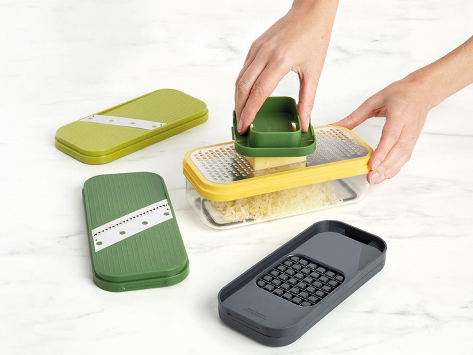 Wielofunkcyjna tarka z wymiennymi ostrzami, pojemnikiem i ochraniaczem palców