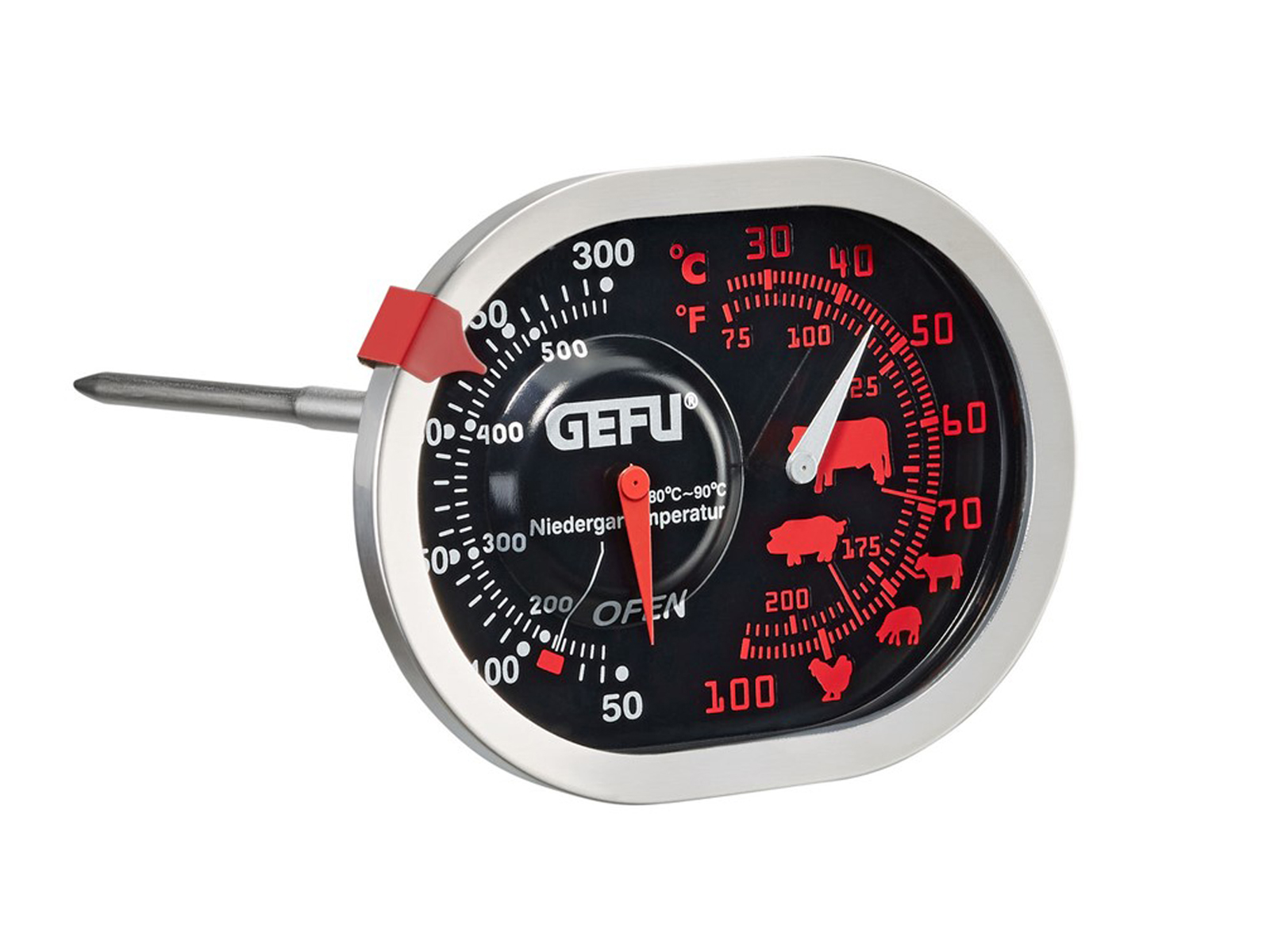 Termometr GEFU Messimo zadba o to, aby mięsne dania z piekarnika były zawsze perfekcyjnie przygotowane.