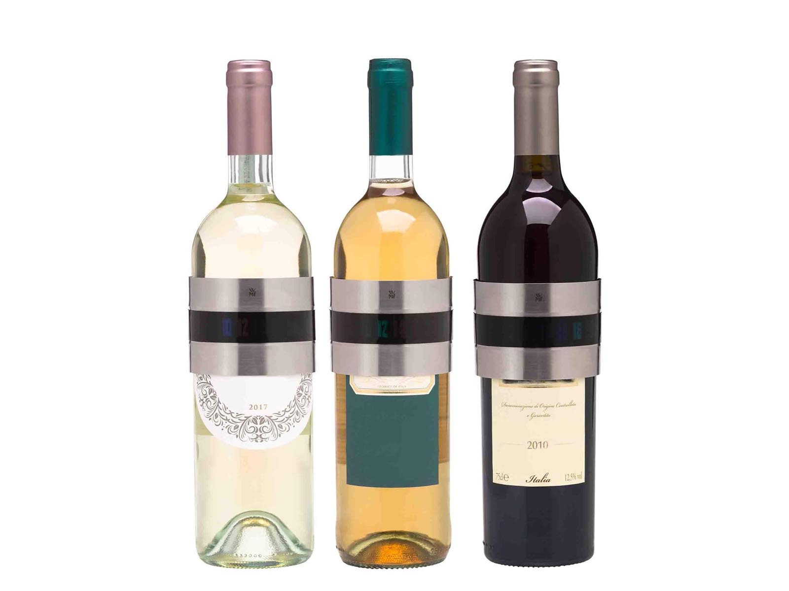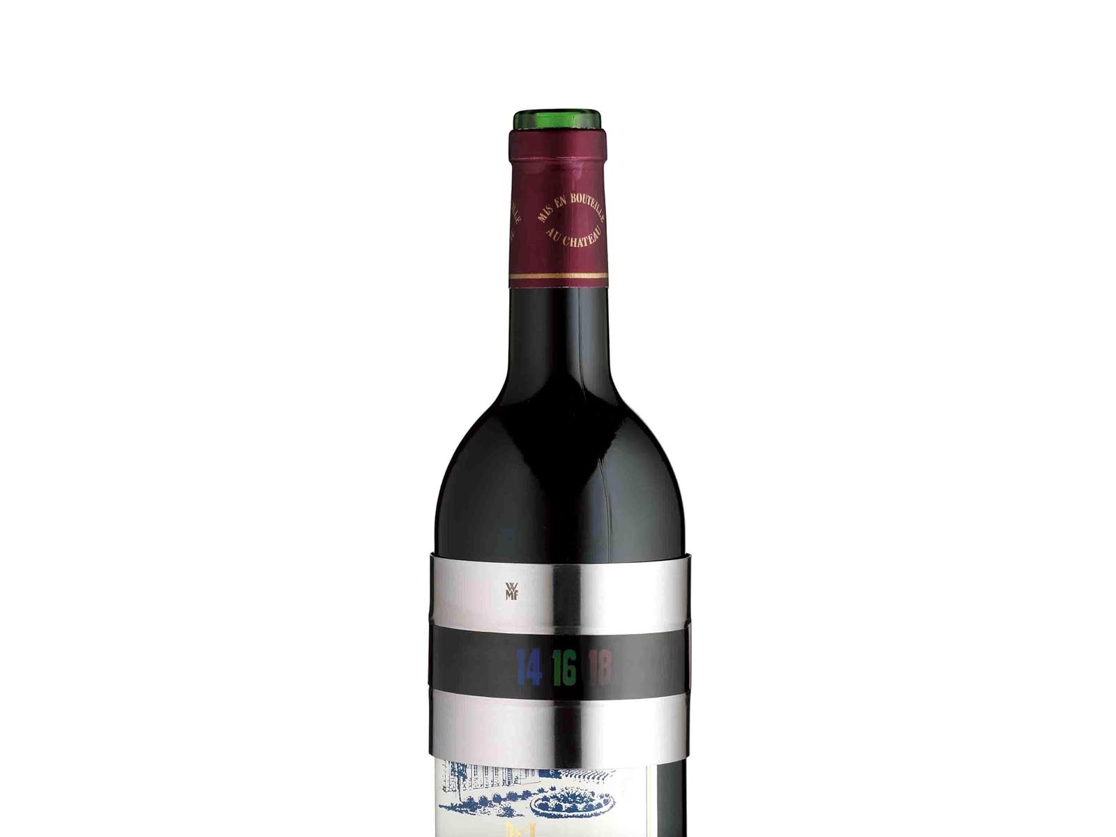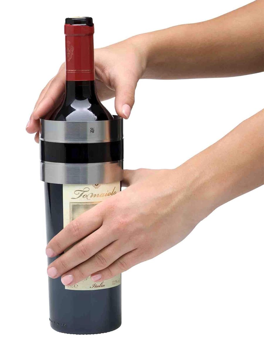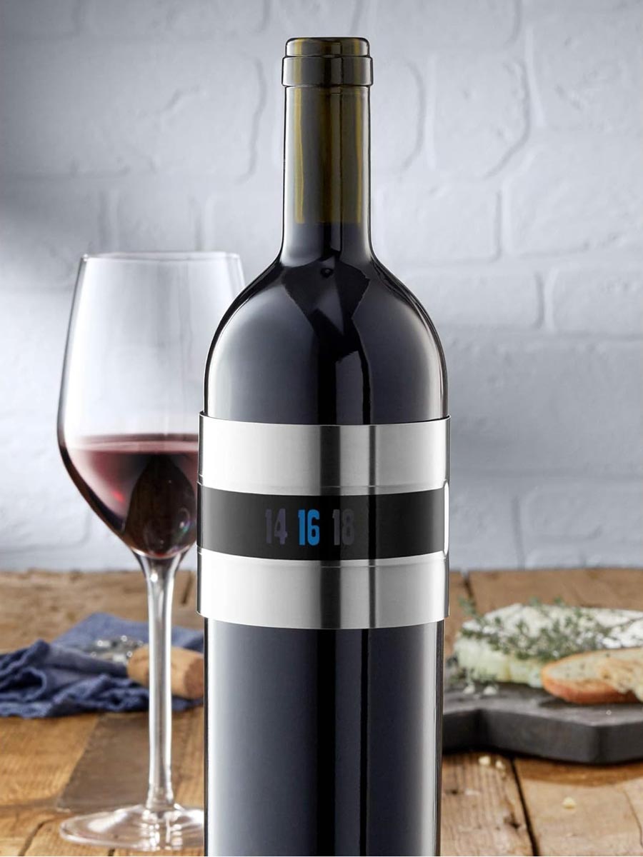 Elegancki niezwykle prosty w użyciu podręczny nabutelkowy termometr do mierzenia temperatury wina bez otwierania butelki.