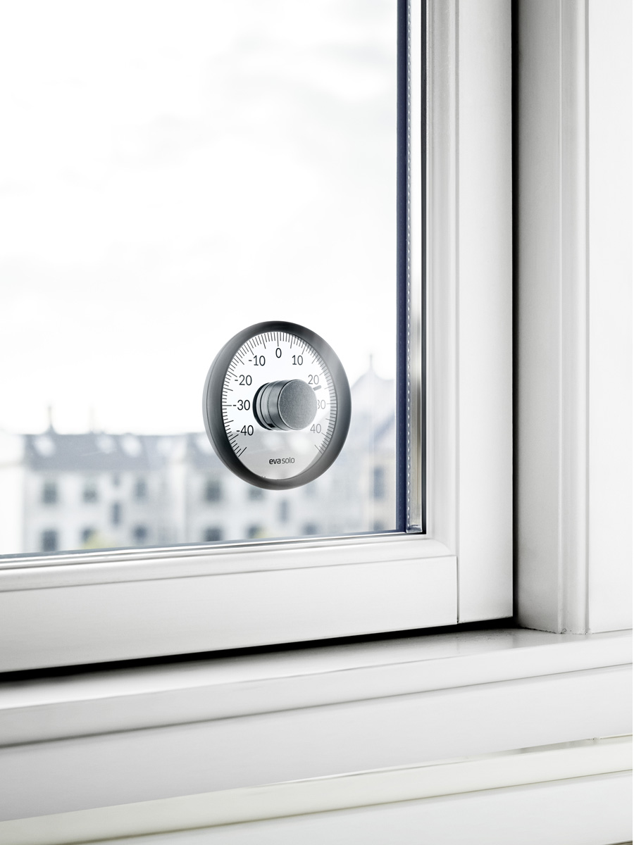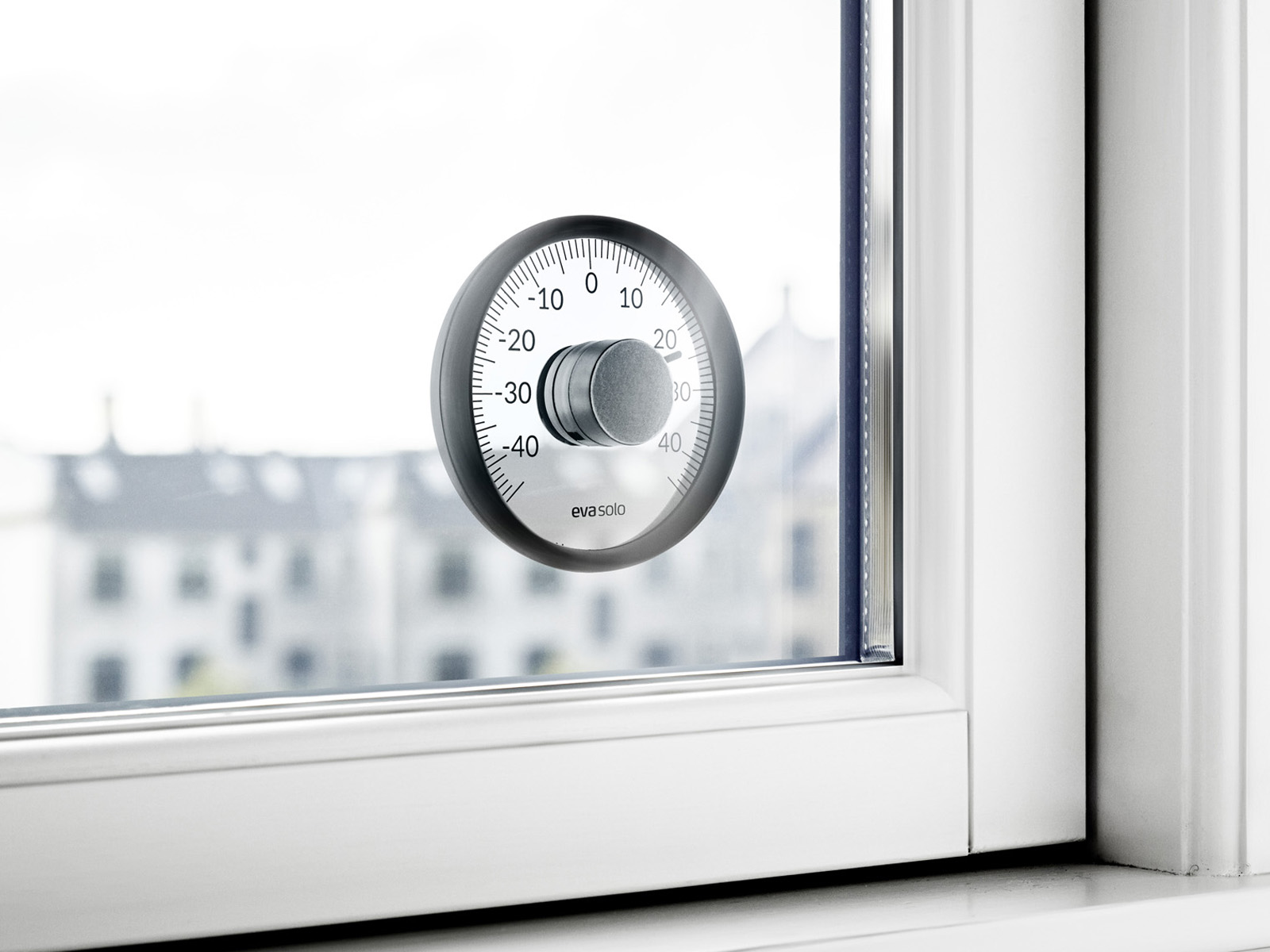 Elegancki zewnętrzny termometr okienny mocowany do szyby za pomocą dwustronnej taśmy samoprzylepnej.