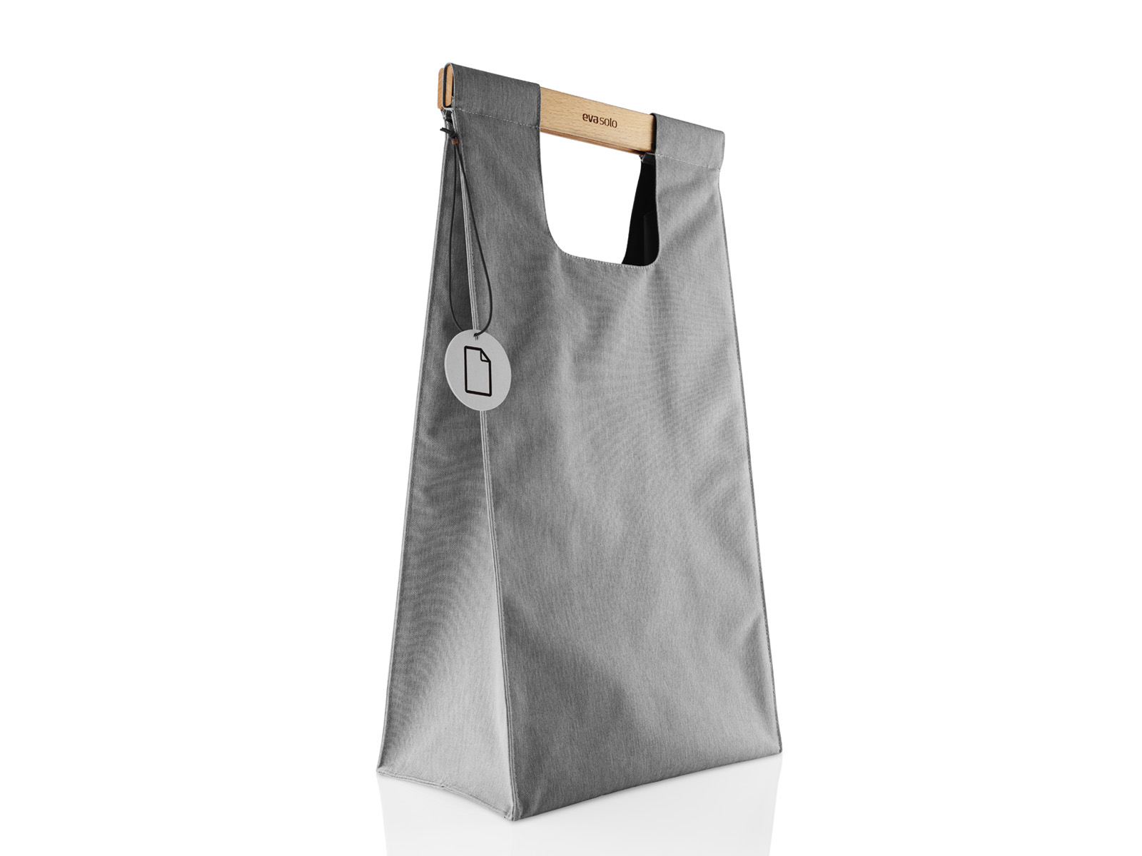 Elegancki solidny i stabilny tekstylny pojemnik na śmieci ułatwiający sortowanie w domu suchych odpadów, takich jak: szkło, papier, karton, plastik, metal i butelki zwrotne.