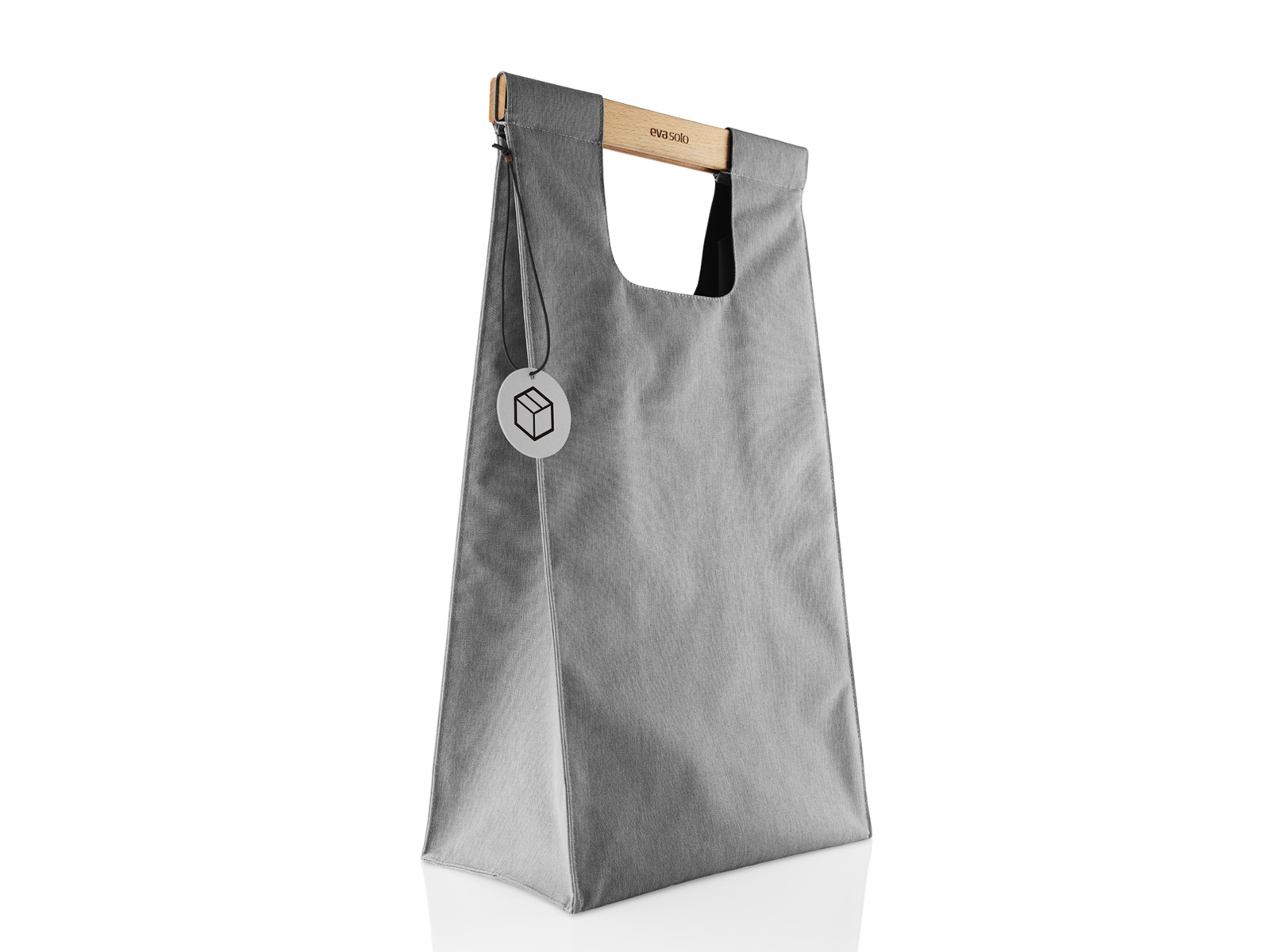 Pojemnik w kształcie prostokątnej torby z poziomymi uchwytami do przenoszenia, wykonany z materiału z wewnętrzną nylonową warstwą umożliwiającą łatwe utrzymanie go w czystości.