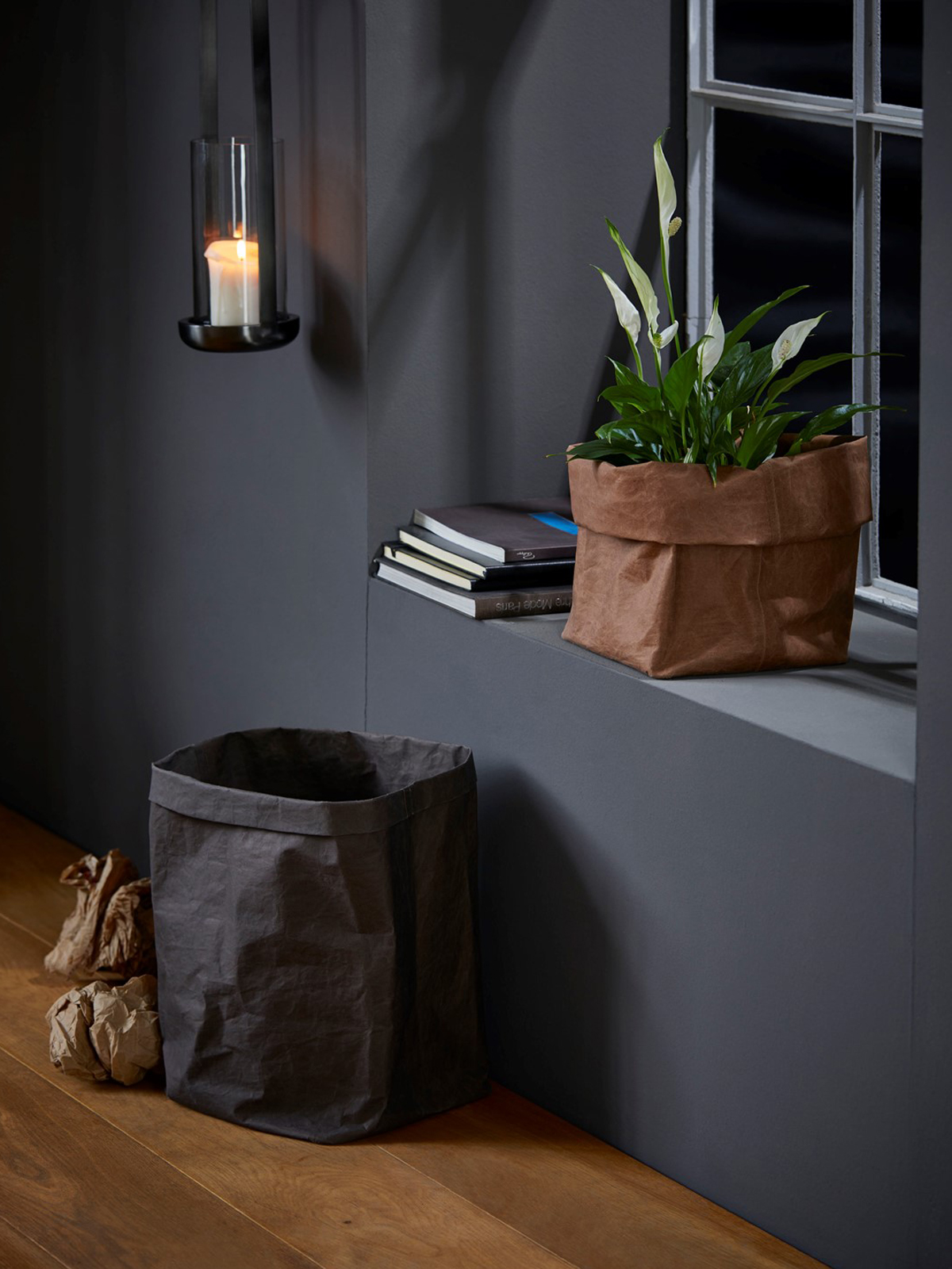 Torba Philippi Todo Brown to funkcjonalny dodatek wykonany ze skóry pochodzącej z recyklingu, który sprawdzi się w wielu domowych warunkach. W zależności od potrzeb może przejąć dowolną rolę: kosza na pranie lub piłki sportowe, pojemnika na doniczkę, segregatora do gazet lub dokumentów czy pudła na zabawki. Materiał o lekko sztywnej strukturze jest wodoodporny oraz aksamitny w dotyku, dzięki czemu zachowuje estetykę i komfort podczas codziennego użytkowania. Można go łatwo zawinąć, dostosowując wysokość wedle własnych preferencji. Dostępność kilku kolorów ułatwia dopasowanie torby do każdego wystroju.