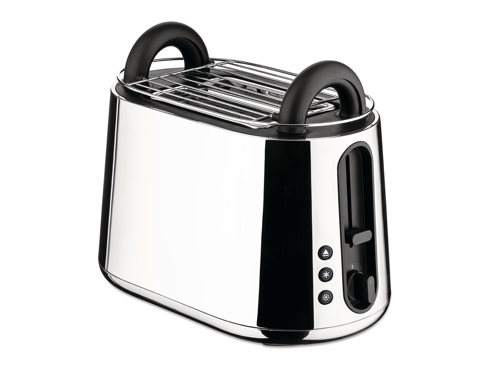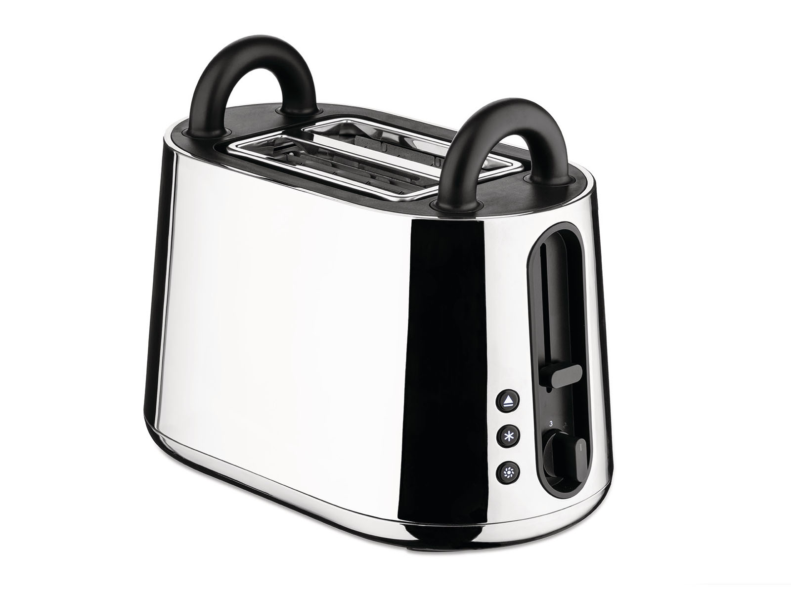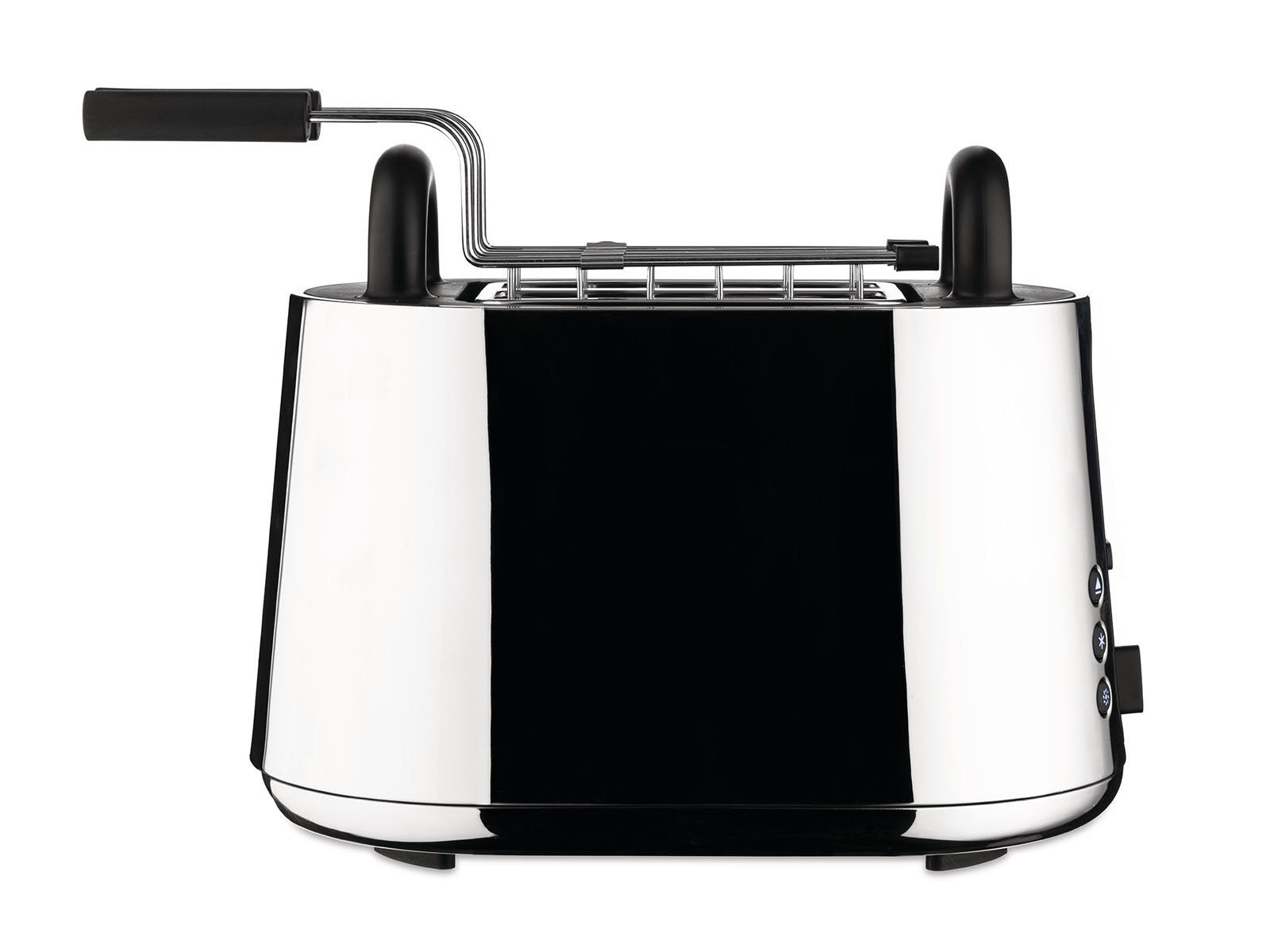 Toster Toru idealnie wpisuje się w koncepcję kolekcji - czarne uchwyty tostera płynnie przechodzą przez korpus tostera i sprawiają wrażenie jednolitego elementu