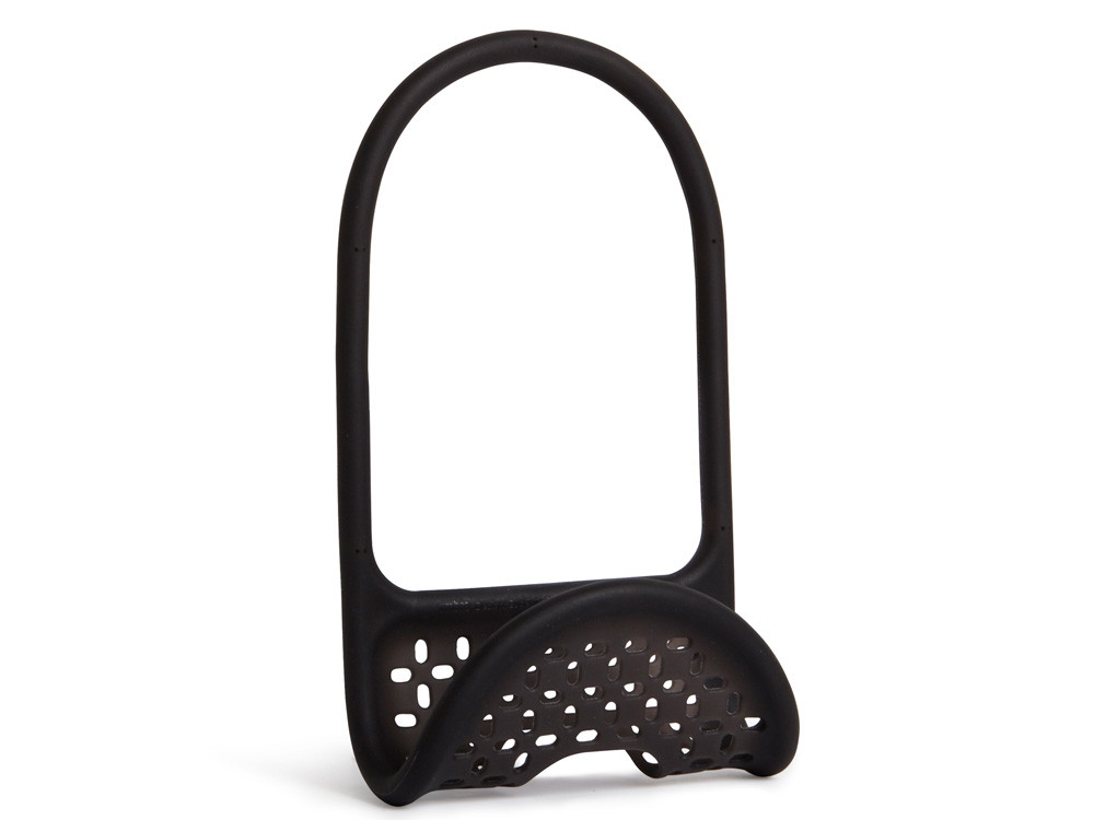 Praktyczny uchwyt na myjkę w kształcie ażurowego koszyczka wykonany z tworzywa sztucznego. Uchwyt posiada elastyczny zaczep z powlekanego drucika do zawieszania na kranie lub przegrodzie między komorami zlewu.