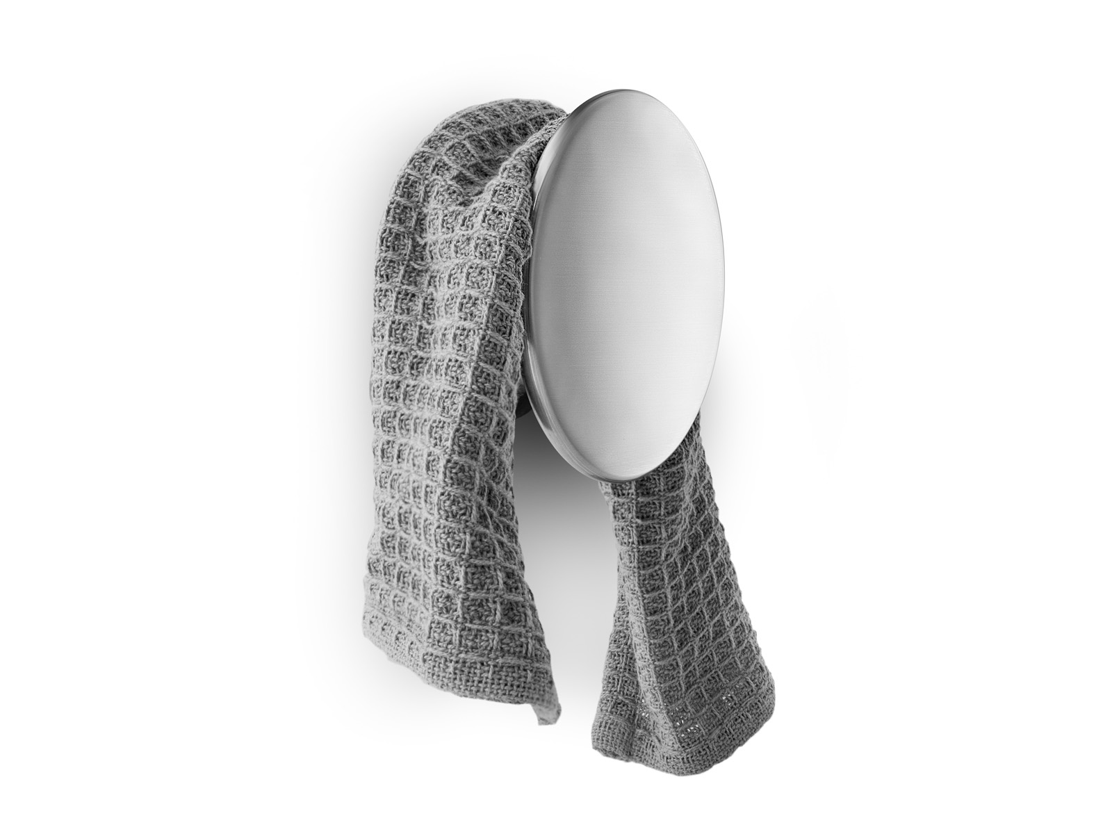 Elegancki i praktyczny uchwyt na ściereczkę do zmywania naczyń zawieszany na ściance zlewu - umożliwia higieniczne i dyskretne suszenie ściereczki poza zasięgiem wzroku.