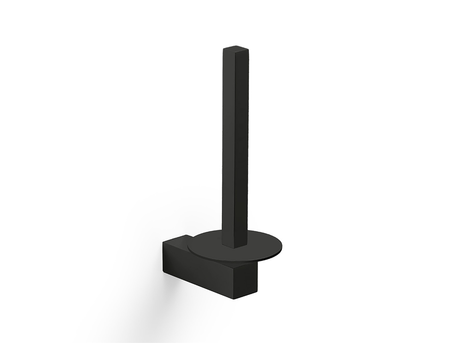 Elegancki ścienny uchwyt na zapas papieru toaletowego z pionowym słupkiem o kwadratowym przekroju i okrągła podstawą.