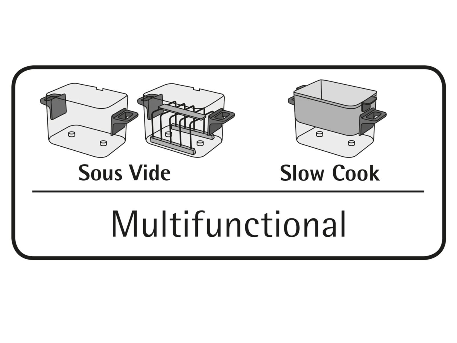 Urządzenie posiada 2 programy gotowania sous vide oraz slow food z bardzo dokładną regulacją temperatury w zakresie od 35°C do 90°C dzięki czemu można uzyskać delikatne, smaczne dania od przystawek po desery, które zawierające nawet o 40 procent więcej minerałów i o 20 procent więcej witamin niż te przygotowywane metodą zwykłego gotowania.