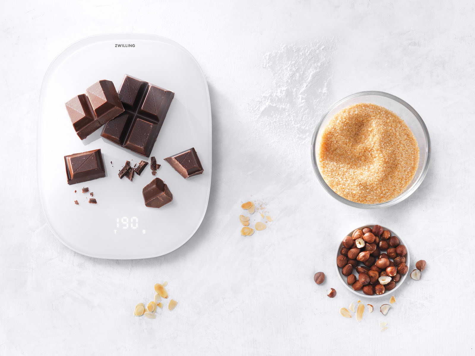 Waga Zwilling Enfinigy to bardzo elegancka waga cyfrowa, która świetnie posłuży do precyzyjnego odmierzenia wagi produktów i składników żywności podczas gotowania i pieczenia