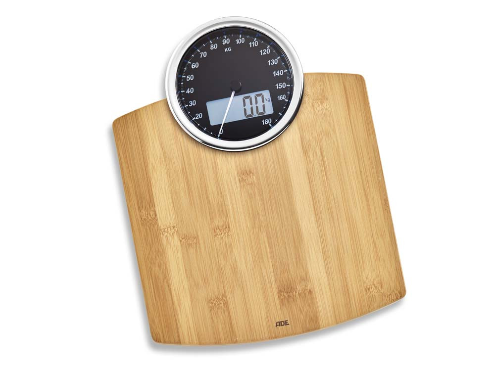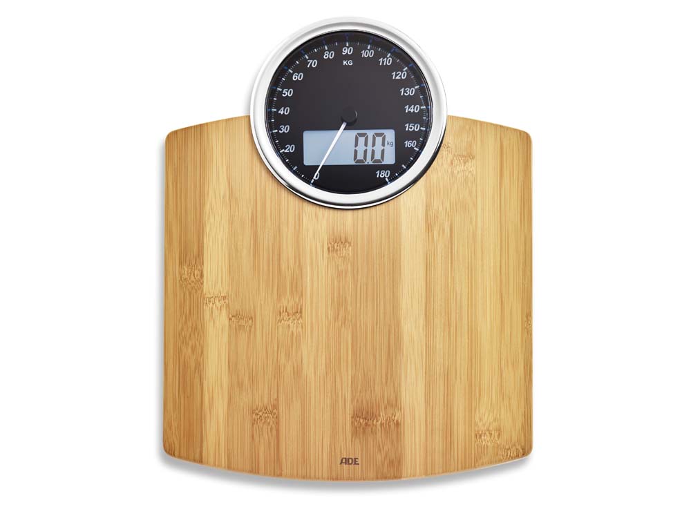 Bambusowa elektroniczno analogowa waga łazienkowa Luna posiada duży podświetlany ekran LCD, a jej piękna powierzchnia z drewna bambusowego przyciąga wzrok swoim opływowym kształtem w stylu retro. Waga posiada takie funkcje jak: automatyczne włączanie w momencie stanięcia na wadze, wskaźnik niskiego poziomu baterii, oraz automatyczne wyłączanie. Urządzenie umożliwia pomiar w takich jednostkach jak: kg, funty z maksymalnym obciążeniem wynoszącym 180kg z dokładnością do 100g.