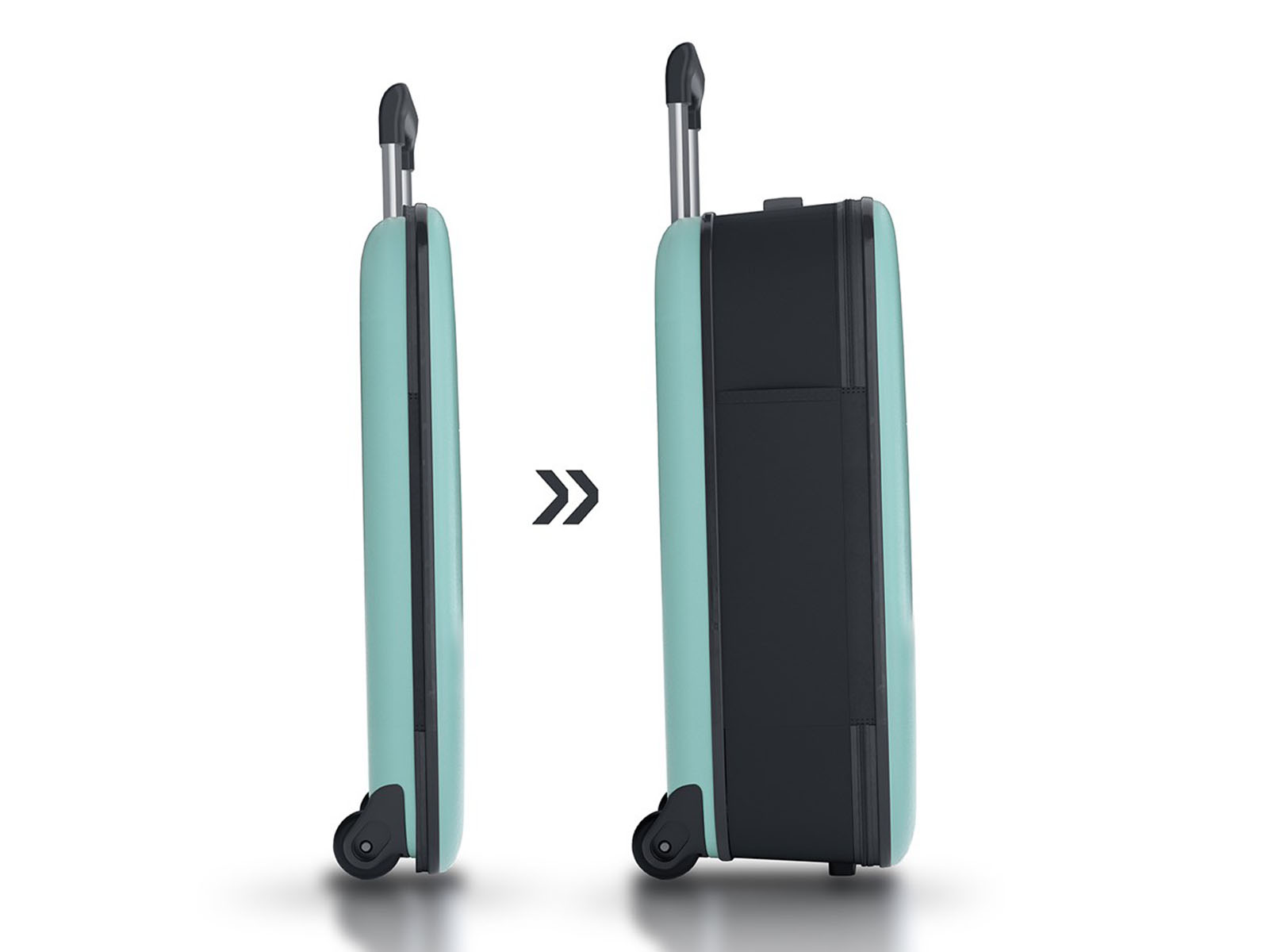 - możliwość złożenia i pomniejszenia grubości walizki o 75%