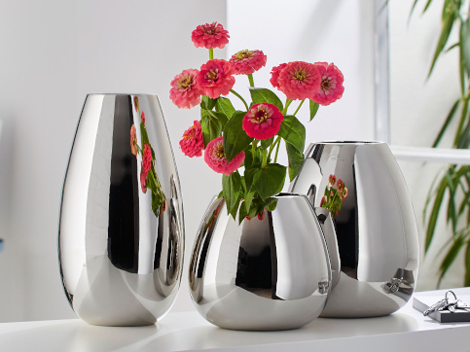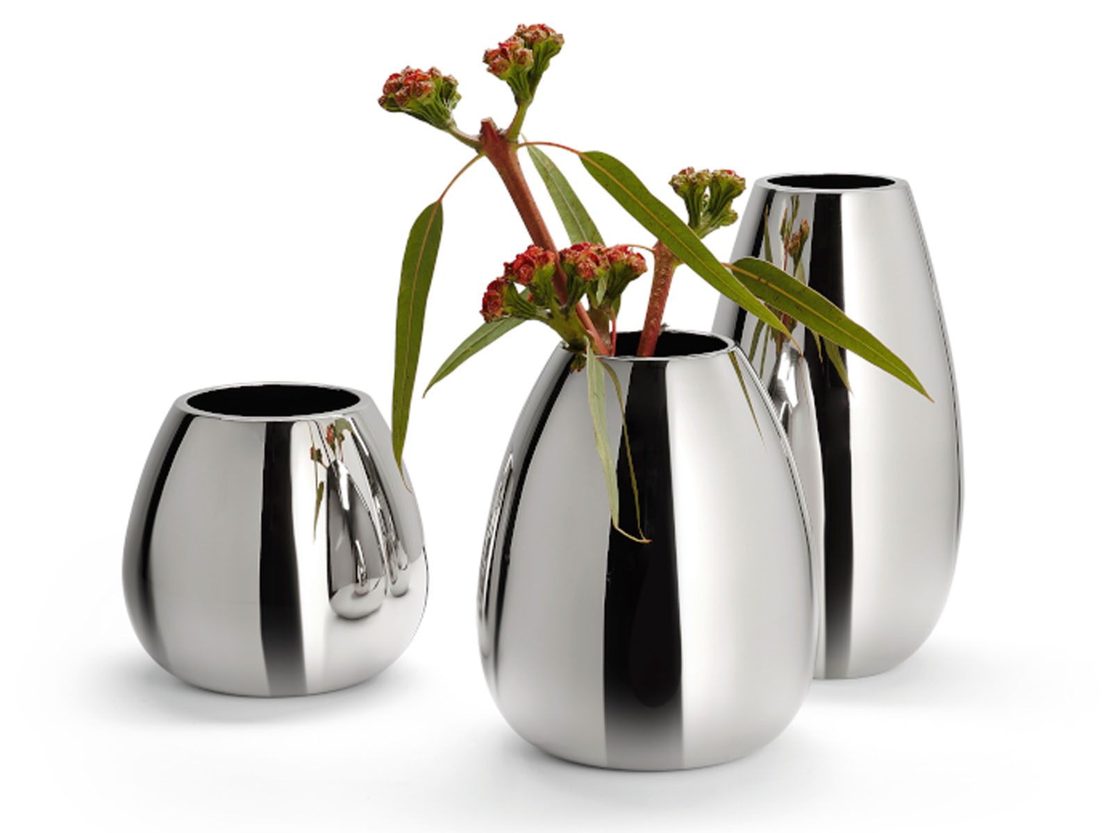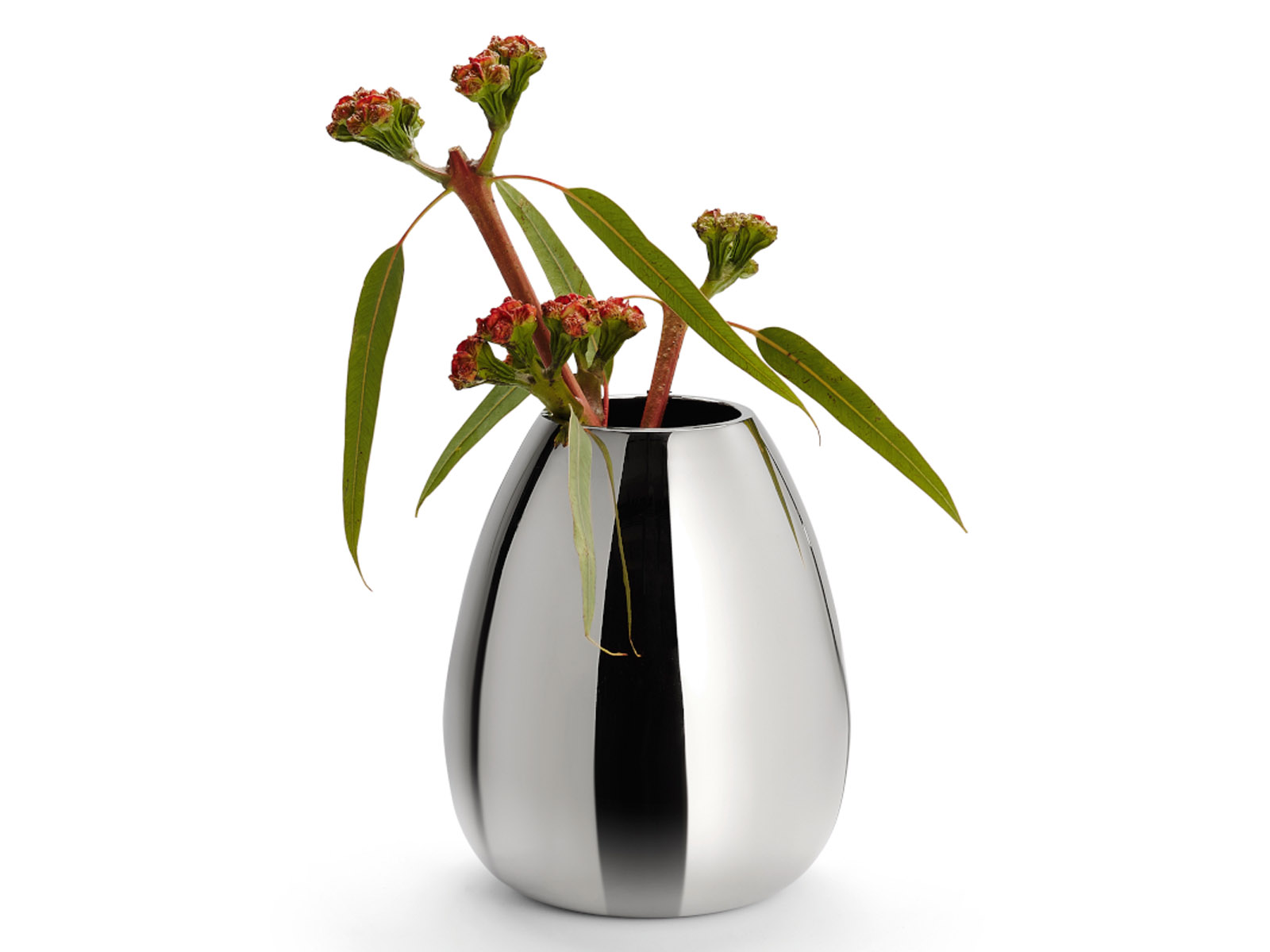 Wazon wykonany jest z litego aluminium niklowanego na wysoki połysk.