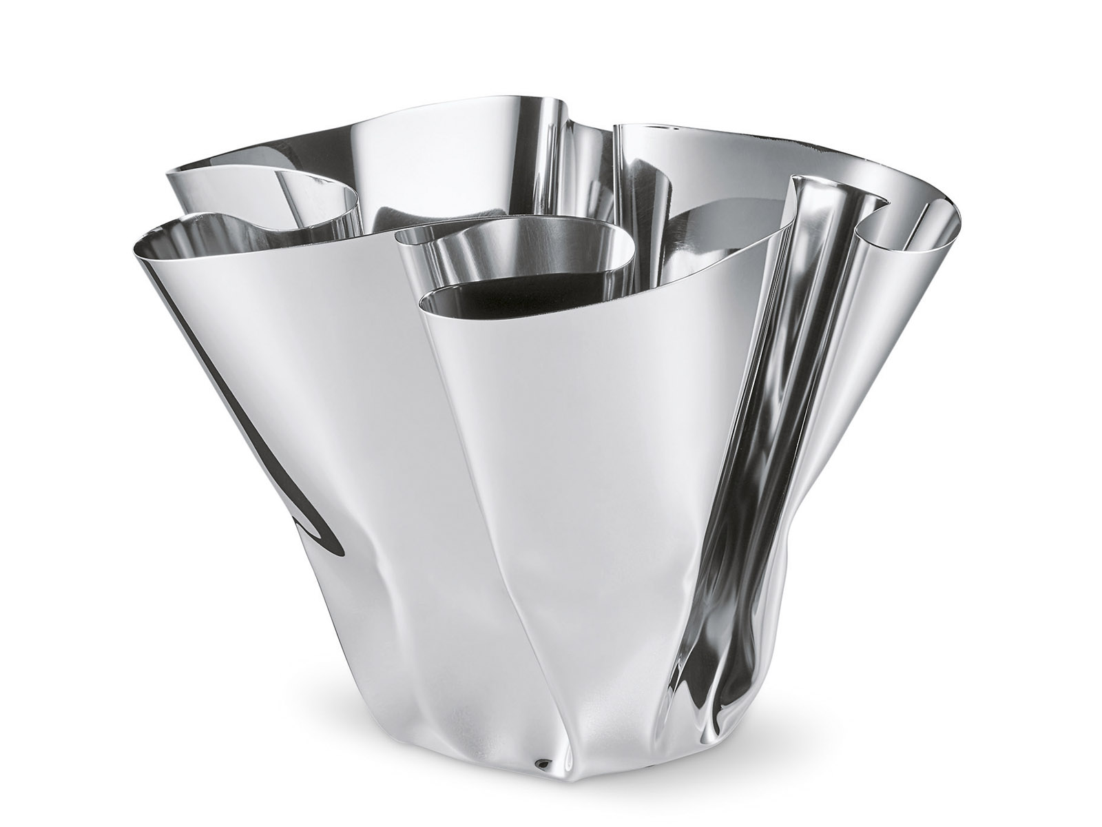 Wazon wykonany z wysokiej jakości polerowanej stali nierdzewnej, ręcznie kształtowany co czyni każdy egzemplarz unikalnym oryginałem.
