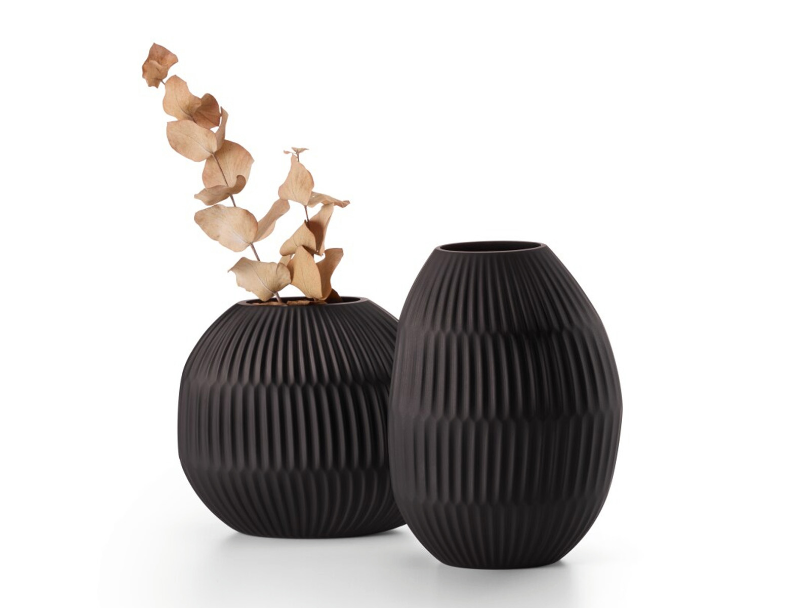 Artystyczna bryła wazonu tworzy ekscytujący kontrast z bukietem naturalnych kwiatów, ale nawet przy ich braku każdy wazon przypomina gotową rzeźbę.
