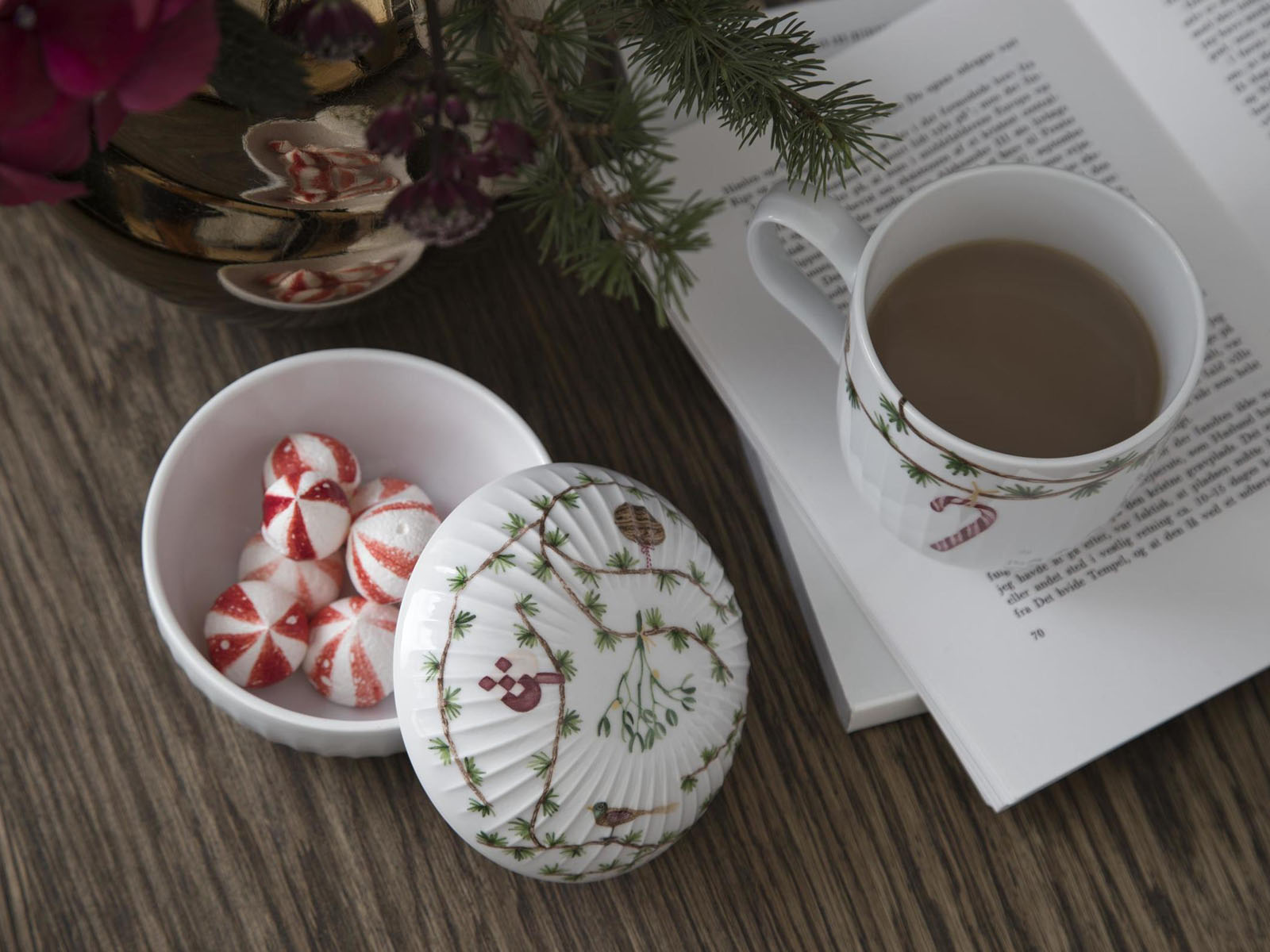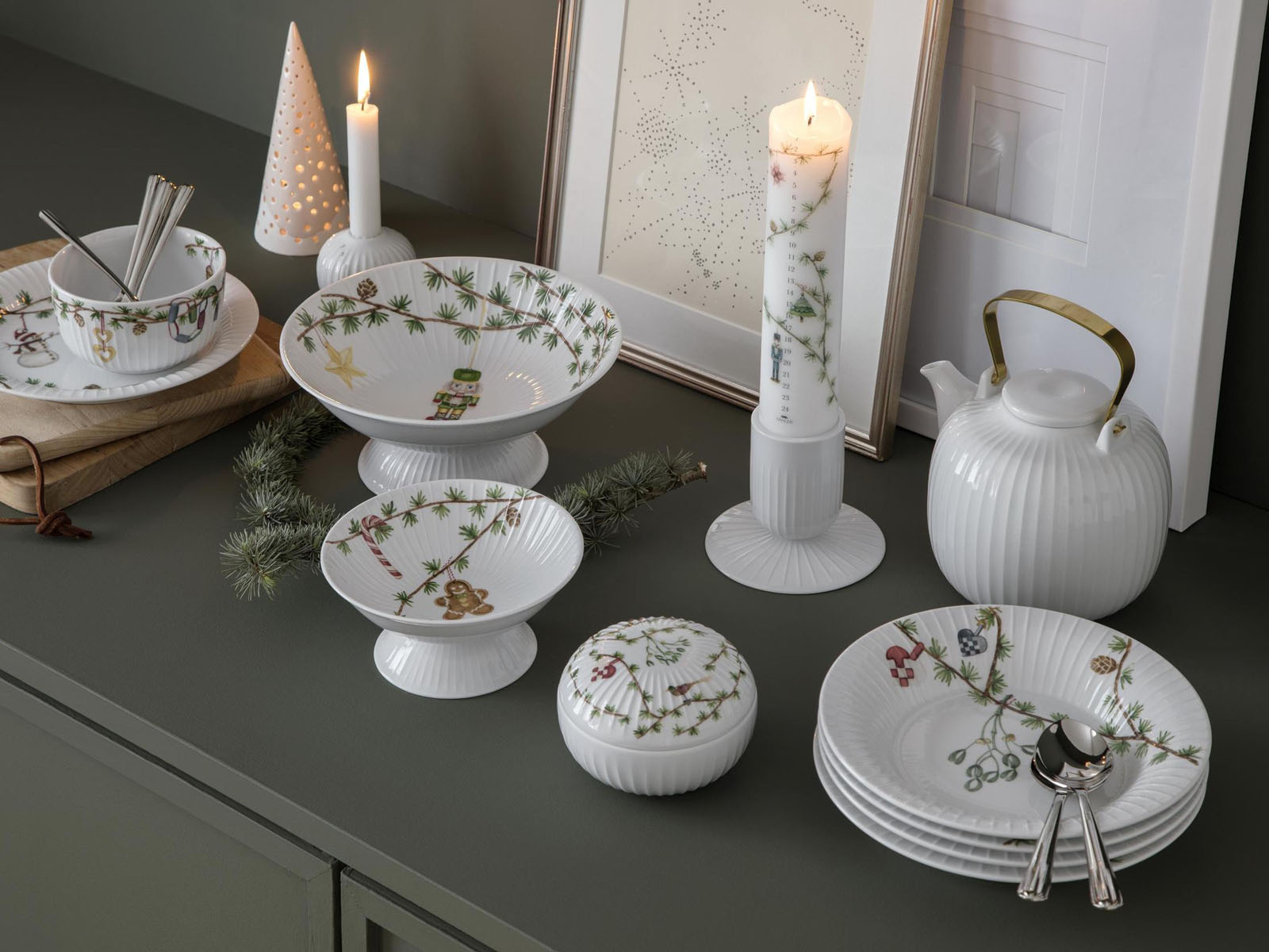 Zastawa stołowa Hammershøi X-mas idealnie wpisuje się w klimat i stylistykę kolekcji. Poszczególne elementy zastawy zdobione sa charakterystycznymi dla kolekcji żłobieniami oraz pięknymi, subtelnymi akcentami bożonarodzeniowymi.