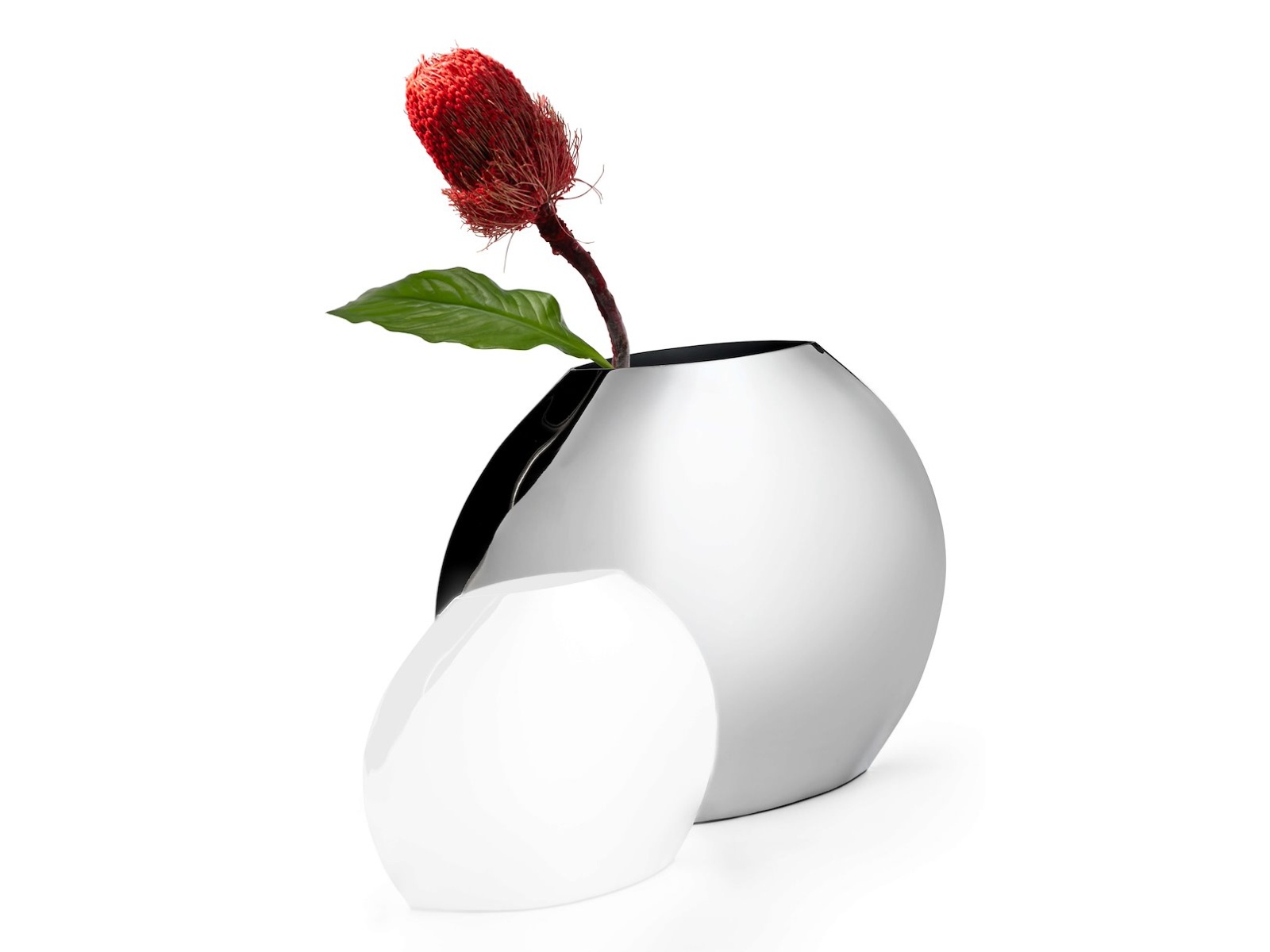 Wazon Philippi Emilia L to naczynie, które tworzy elegancki akcent dekoracyjny dzięki symetrycznej formie i lustrzanemu połyskowi stali nierdzewnej. Delikatnie zwężający się, podłużny otwór podkreśla urok pojedynczych kwiatów oraz prostych, linearnych aranżacji. Gładka, polerowana powierzchnia subtelnie odbija światło, dodając kwiatom lekkości i współczesnego charakteru.