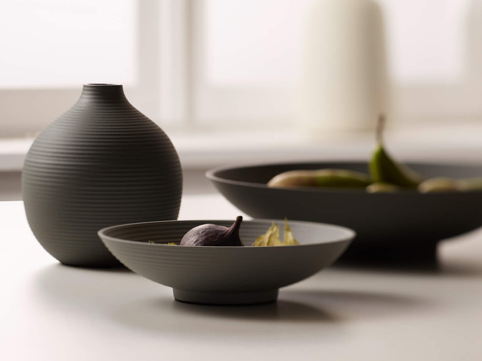 Wazon Philippi Lim to nowoczesne naczynie, które łączy efekt naśladowania ceramiki z trwałością metalu. Jego aluminiowy korpus został pokryty powłoką malowaną proszkowo, dzięki czemu zyskał ceramiczny, matowy wygląd. Kulista, prążkowana forma z dyskretnym otworem podkreśla uniwersalny charakter wazonu i doskonale prezentuje pojedyncze gałązki lub niewielkie bukiety.