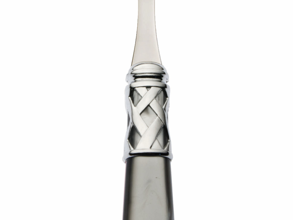 Widelczyk wykonany z wysokiej jakości stali nierdzewnej z akrylowym trzonkiem w kolorze perłowej szarości.