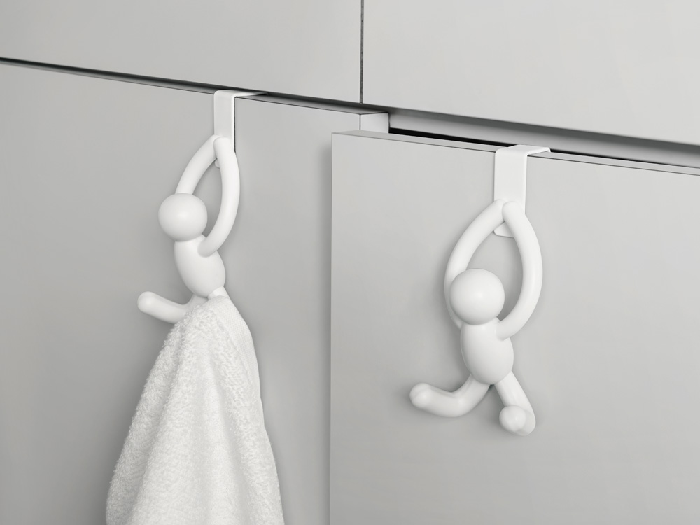 Zestaw 2-óch podręcznych wieszaczków w kształcie "ludzików" podciągających się na zaczepie ze zgiętymi nogami które pełnią rolę haczyków.