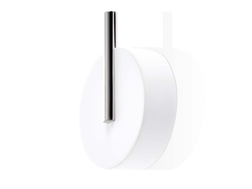 Elegancki ścienny wieszaczek łazienkowy z okrąglą podstawą wykonaną z innowacyjnego, odpornego na uszkodzenia a zarazem przyjaznego dla środowiska kompozytu mineralnego oraz haczykiem z wysokiej jakości stali nierdzewnej w wykończeniu matowym.