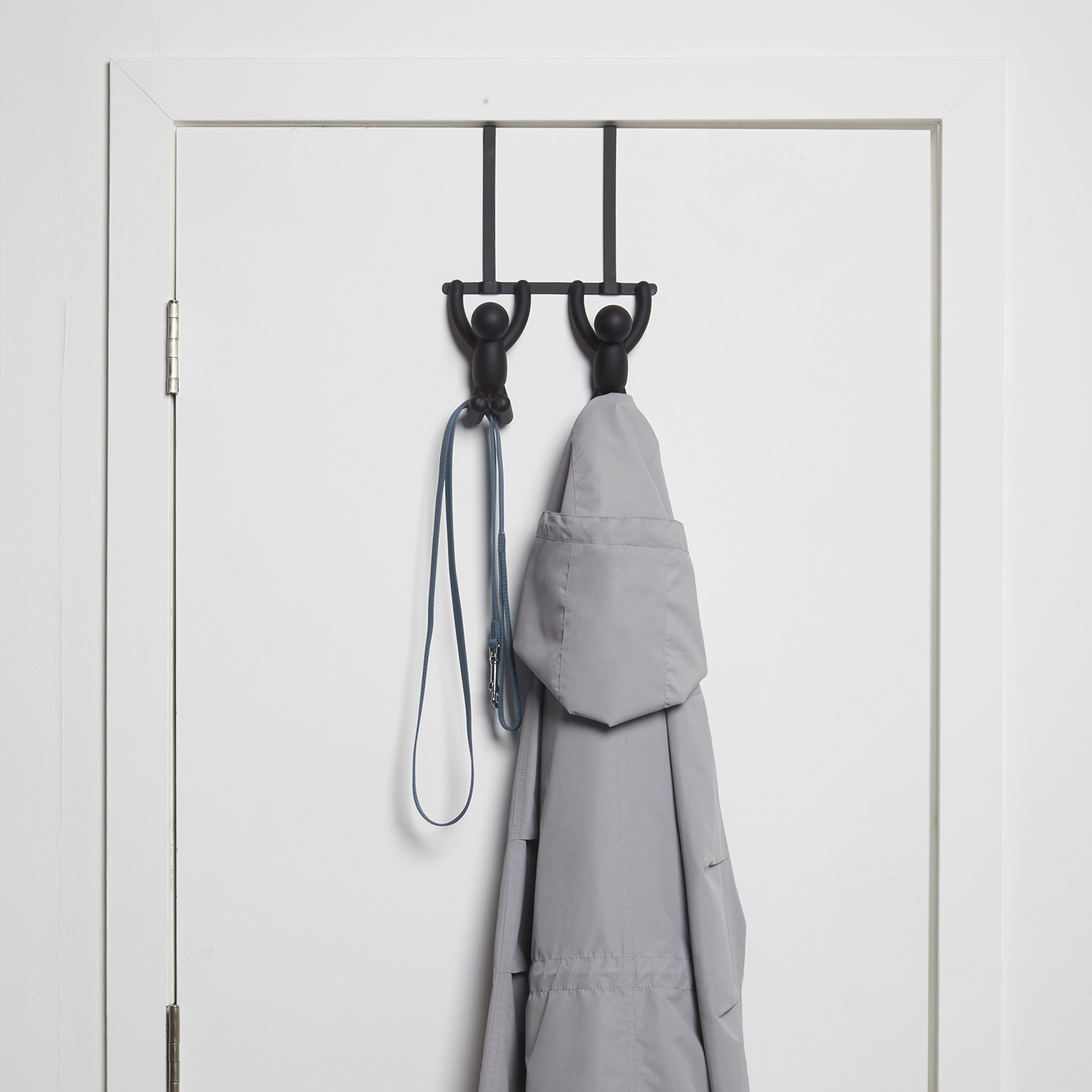 Wieszak zawieszony bezinwazyjnie na górnej krawędzi drzwi lub szafy.