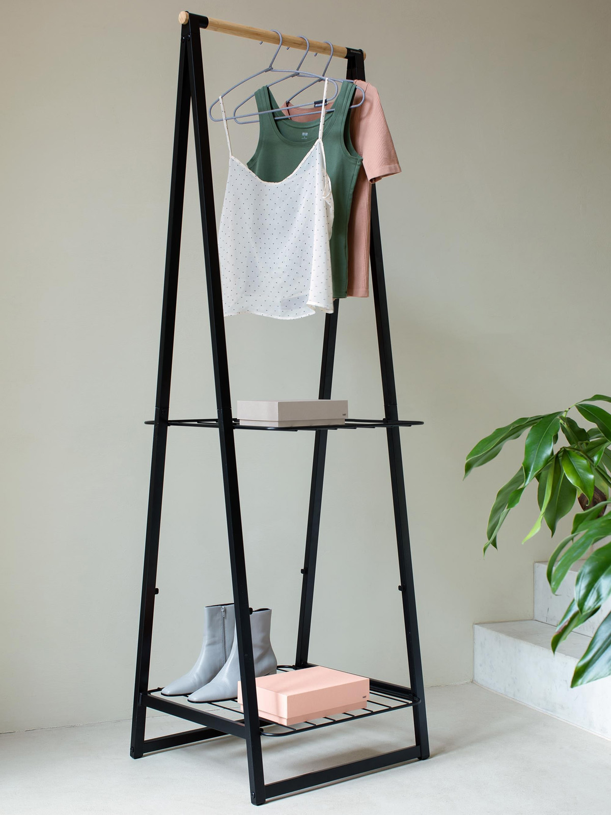Zestaw 3 sztuk eleganckich wieszaków na ubrania do zawieszenia na drążku w szafie lub drążku wieszaka w garderobie.