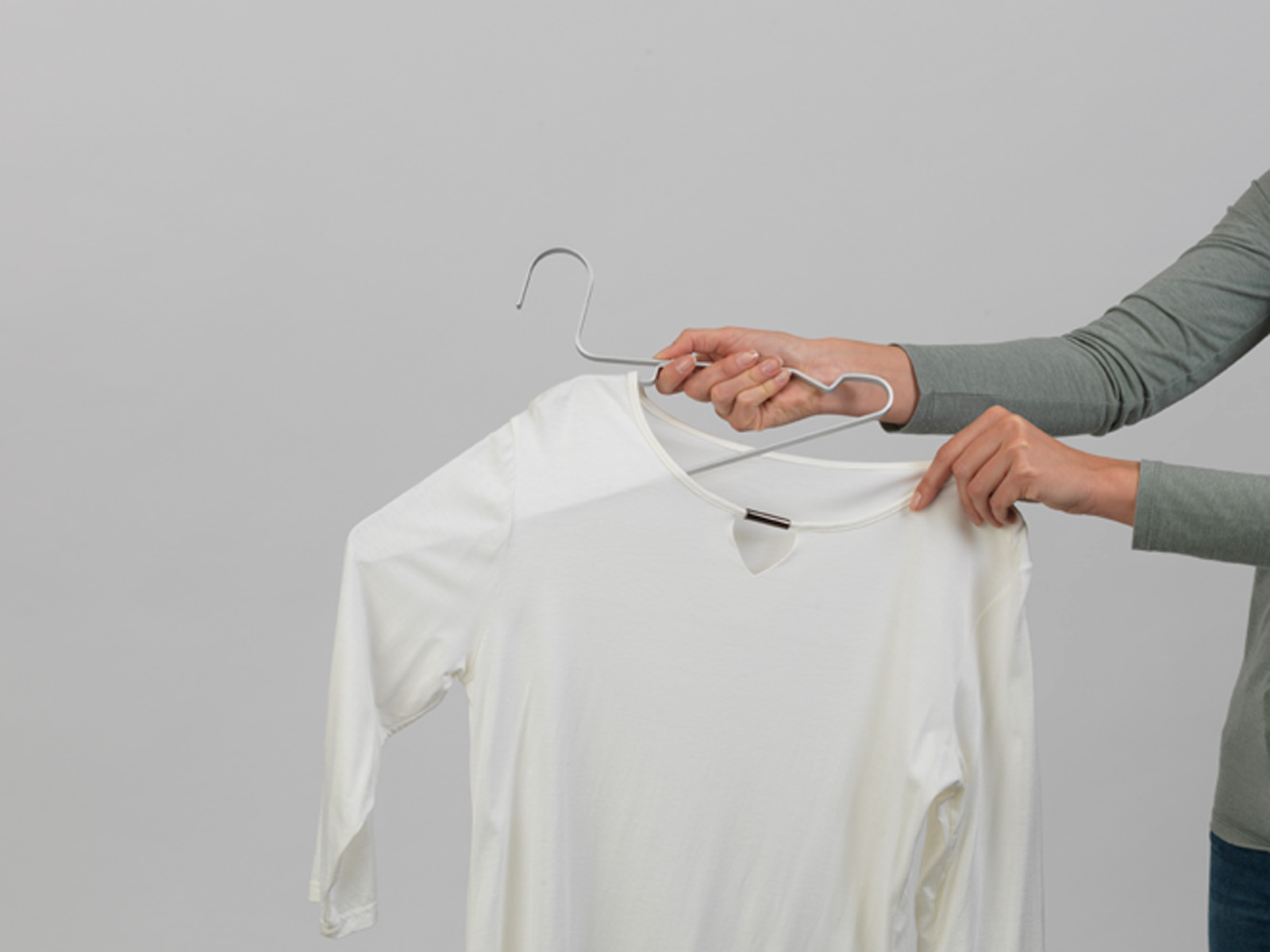 Ponadto sprytne wycięcia po obu stronach wieszaka sprawia, że idealnie nadaje się on do wieszania ubrań na ramiączkach.