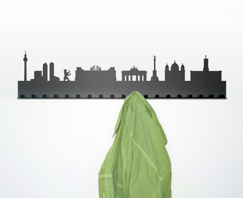 Baza wieszaka to wycięte laserowo kształty charakterystycznych dla miasta elementów. Dodatkowo wieszak posiada 19 pojedynczych wieszaczków na ubrania.