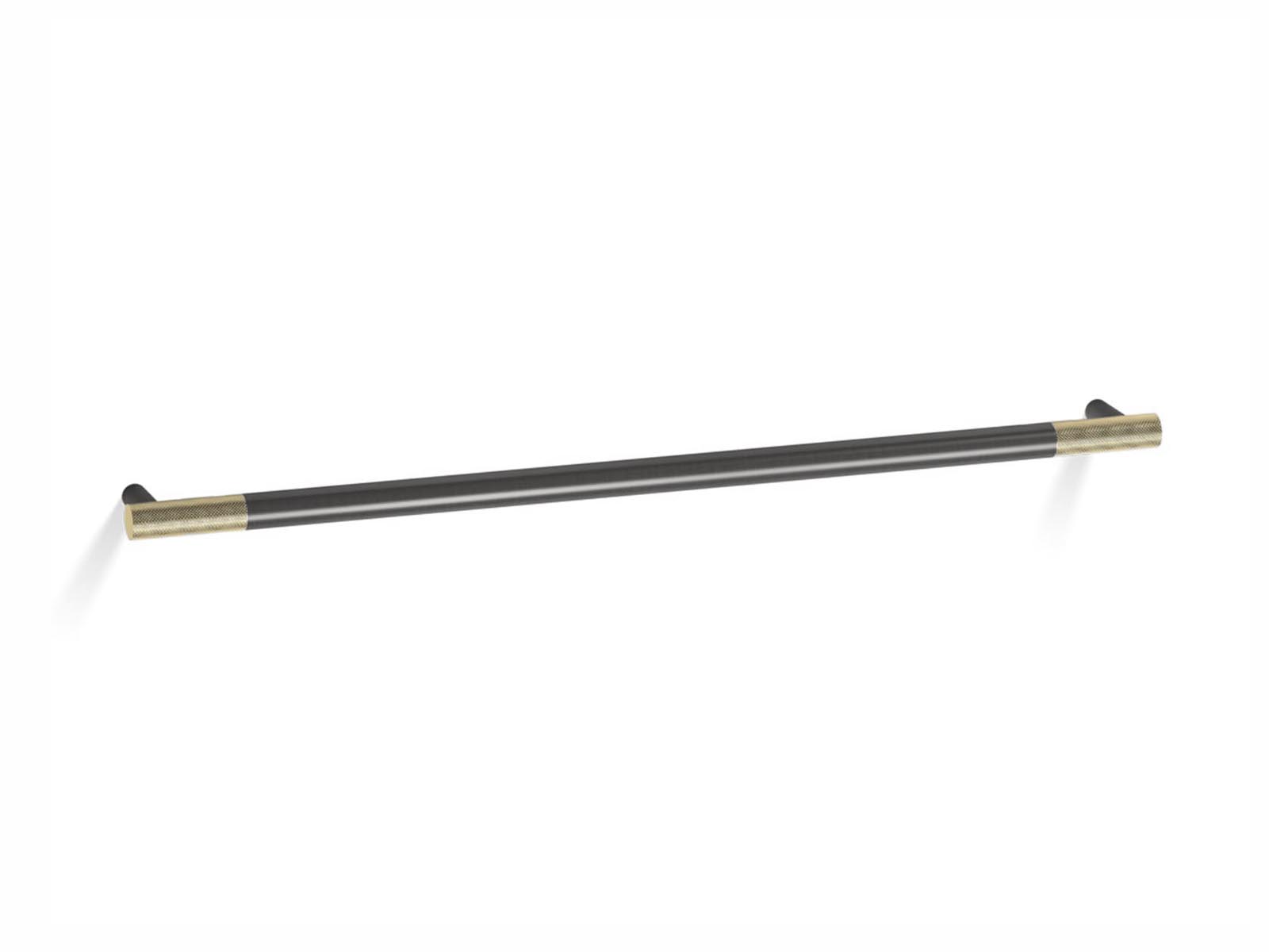 Elegancki poziomy ścienny dwukolorowy wieszak na ręczniki w formie pojedynczego relingu o okrągłym przekroju.