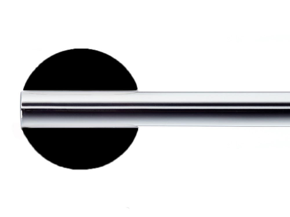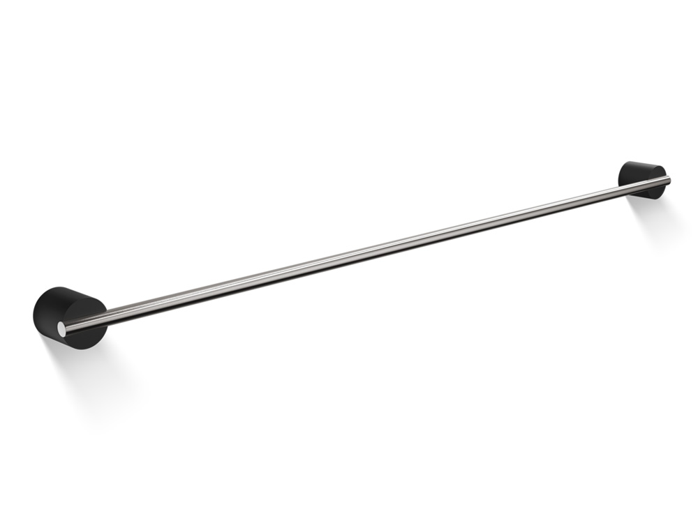 Elegancki poziomy ścienny wieszak na ręczniki w formie pojedynczego relingu o okrągłym przekroju z cylindrycznymi mocowaniami.