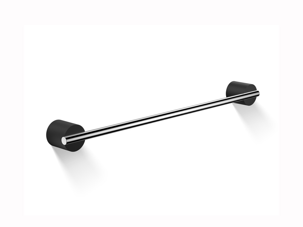 Elegancki poziomy ścienny wieszak na ręczniki w formie pojedynczego relingu o okrągłym przekroju z cylindrycznymi mocowaniami.