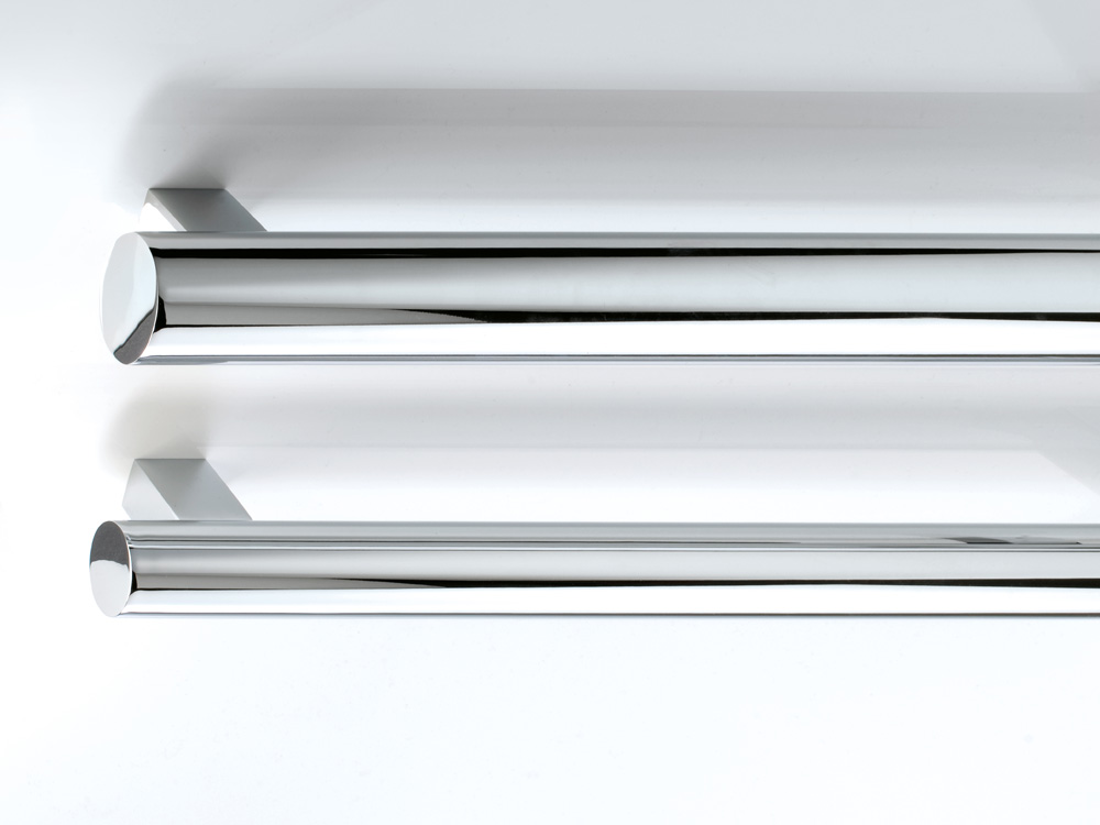Elegancki poziomy wieszaka na ręczniki w formie pojedynczego relingu o okrągłym przekroju wykonany z wysokiej jakości chromowanego mosiądzu.
