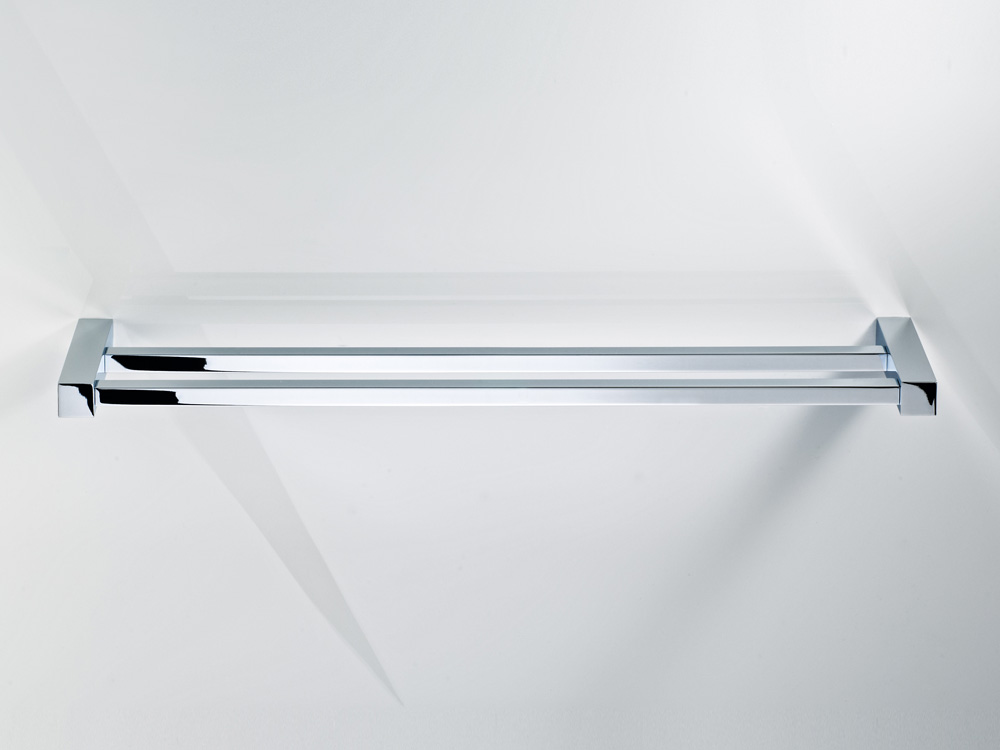 Elegancki poziomy wieszaka na ręczniki w formie podwójnego relingu o kwadratowym przekroju.