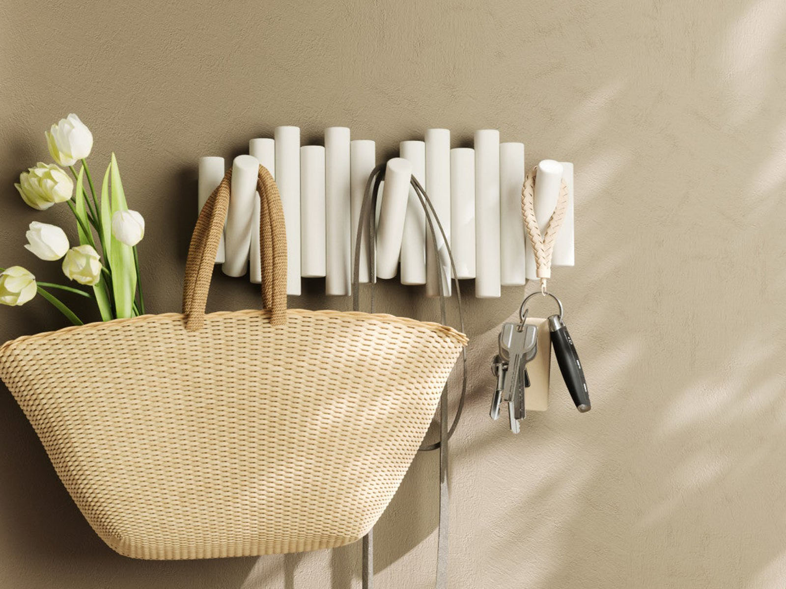 Stylistyka wieszaka nadaje mu nowoczesnego i oryginalnego wyglądu, dzięki temu może stanowić zarazem funkcjonalny i ozdobny element wystroju holu czy przedpokoju.